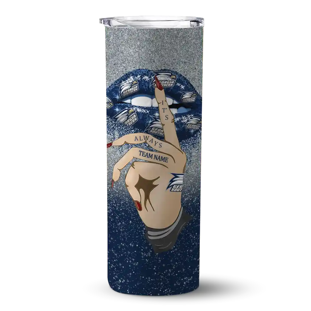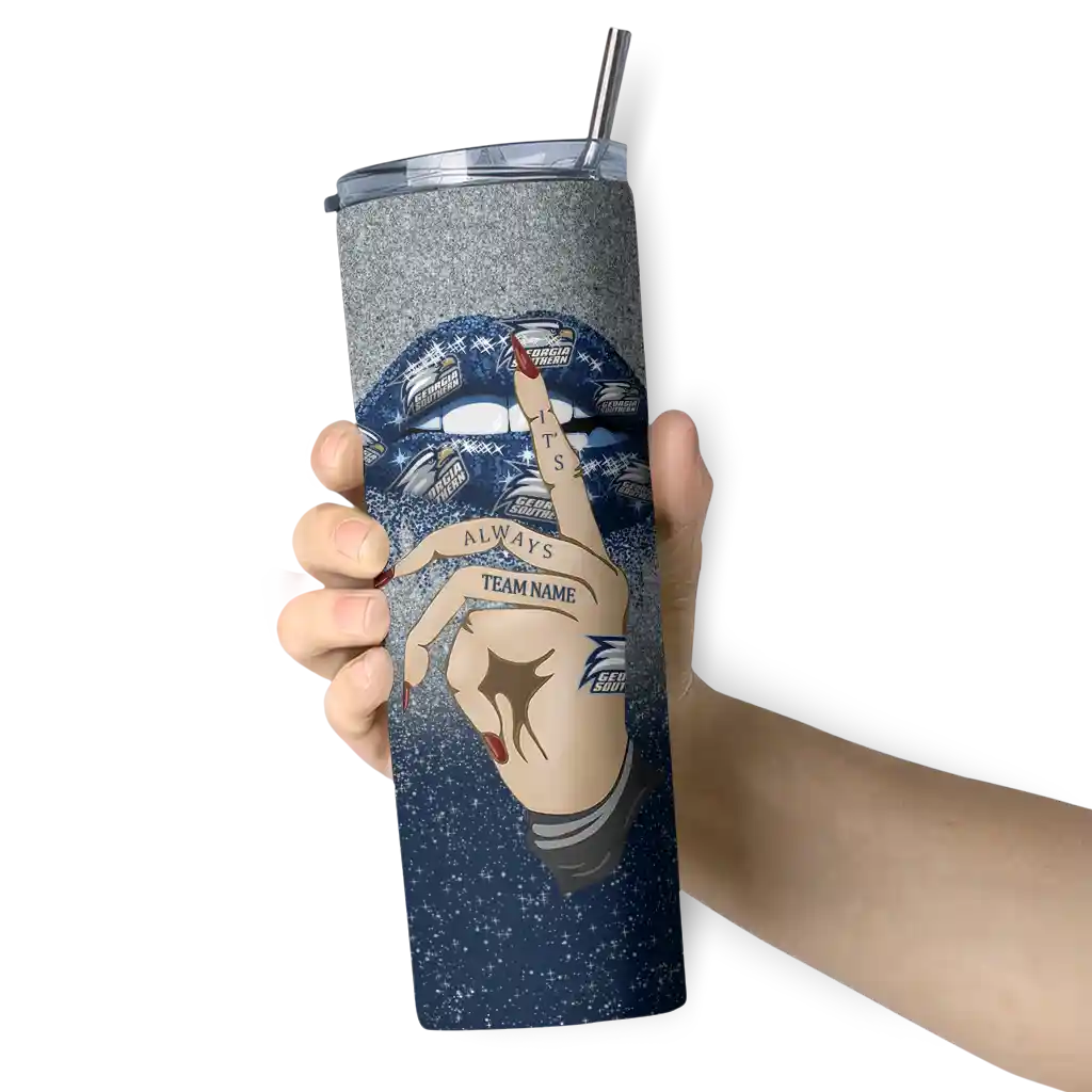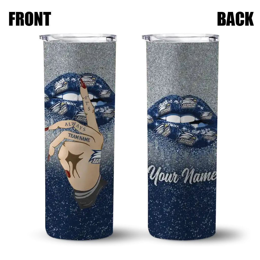 Custom Georgia Southern Eagles Sparkle Lips Blue Skinny Tumbler