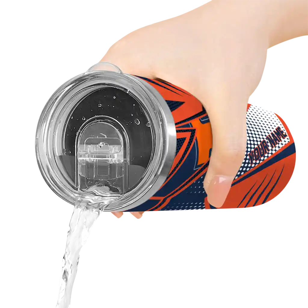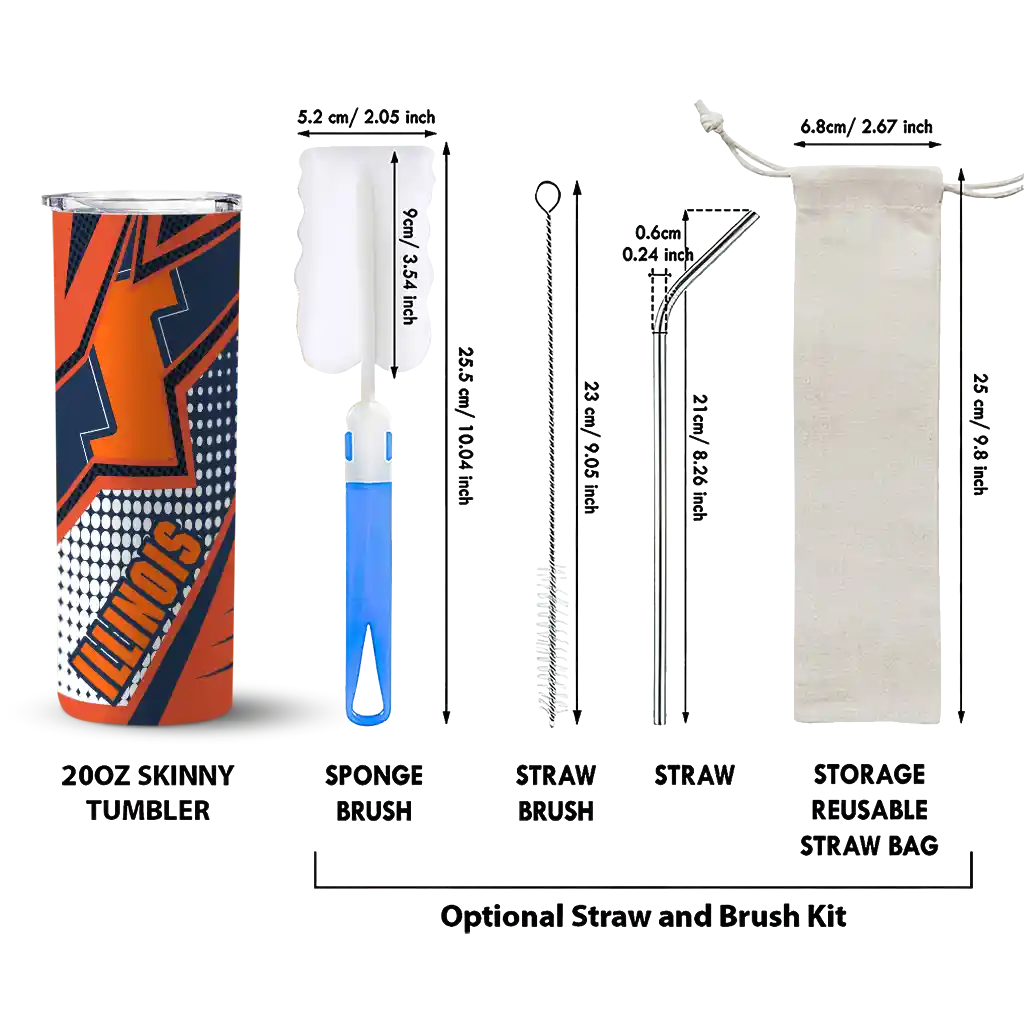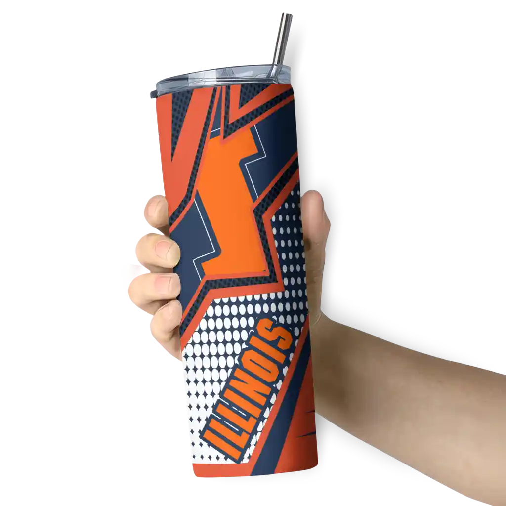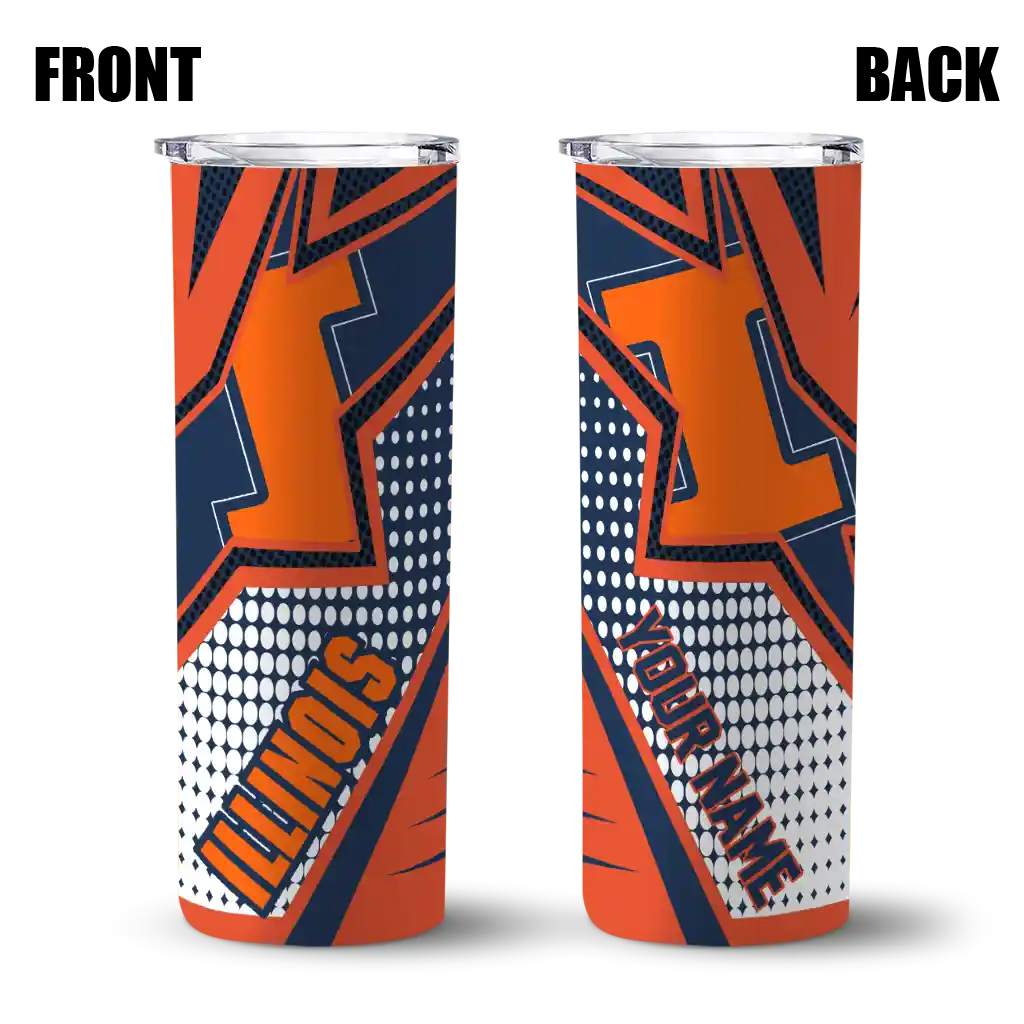 The Custom Illinois Fighting Illini Web Stripes Blue White Skinny Tumbler tumbler is the perfect way to stay refreshed while showing off your pride for Illinois Fighting Illini. With its double-wall insulation, your drinks stay at the right temperature for hours, whether you're enjoying a hot coffee or keeping your iced drink cold. What's inside? You’ll find 1 stainless steel tumbler, 1 clear lid, and 1 removable straw. It's the perfect blend of function and fan spirit! Ergonomically designed for comfort, made from durable stainless steel, and insulated to maintain your drink’s temperature, this tumbler is a must-have for any dedicated NCAA fan.