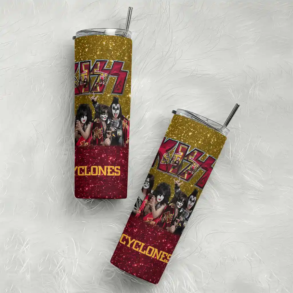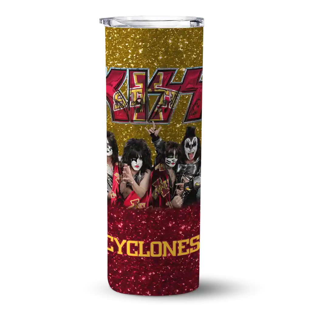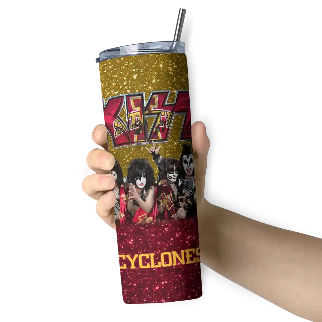 Custom Iowa State Cyclones Kiss Band Gold Skinny Tumbler