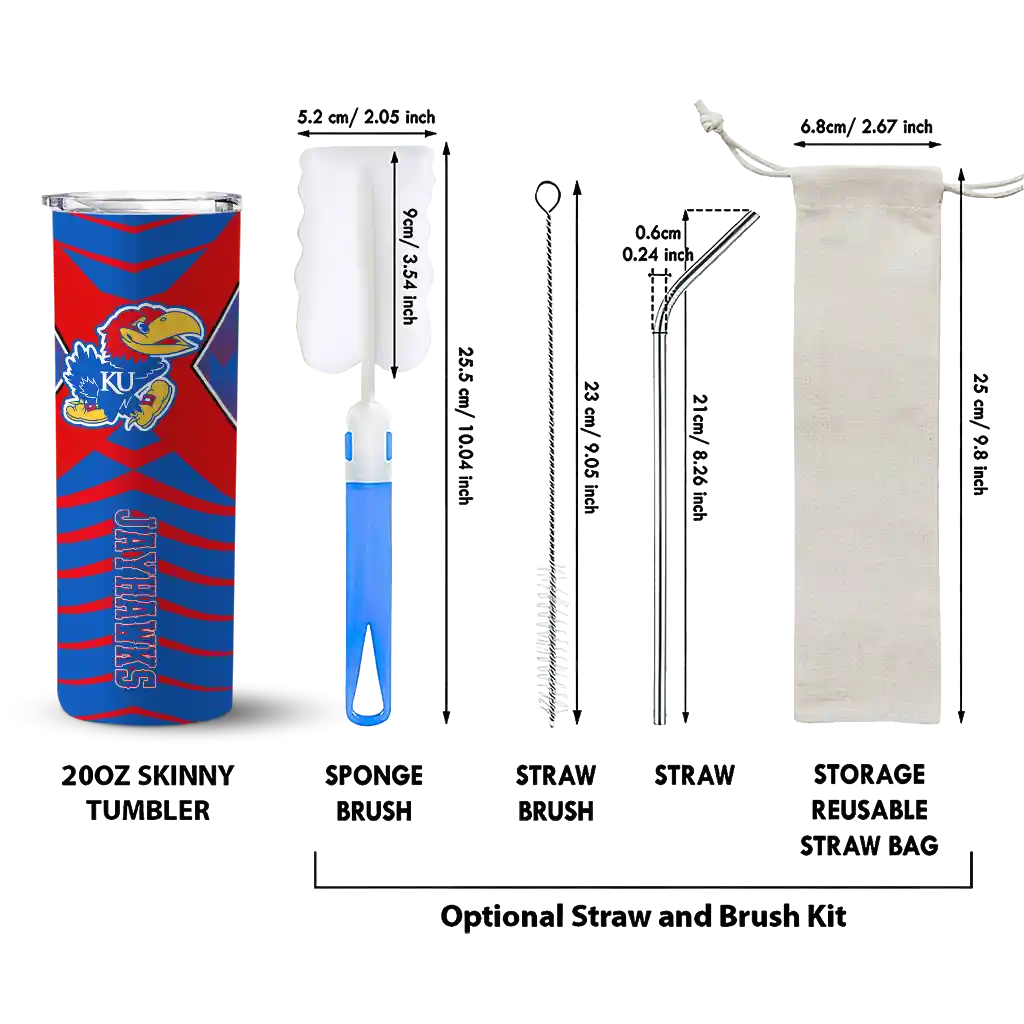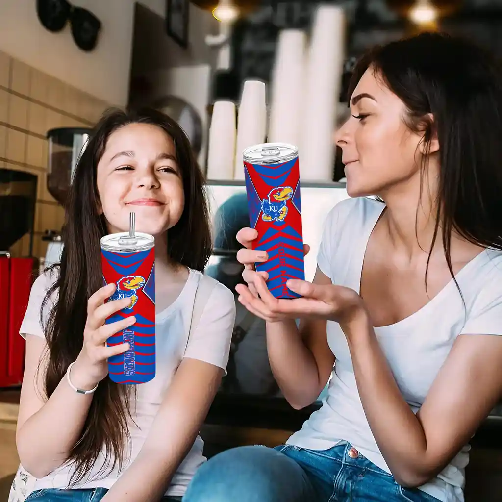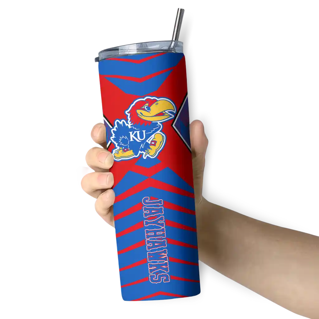 Introducing the Kansas Jayhawks Tumblers  from NCAA Fan Pro —where fan pride meets practical design. This slim tumbler is created for NCAA fans who want their drinks at the perfect temperature while displaying their school pride. The double-wall insulation ensures your hot beverages stay warm and your cold drinks stay chilled for hours, so you can enjoy your drinks at their best, whether you're at a game, tailgate, or on the go.