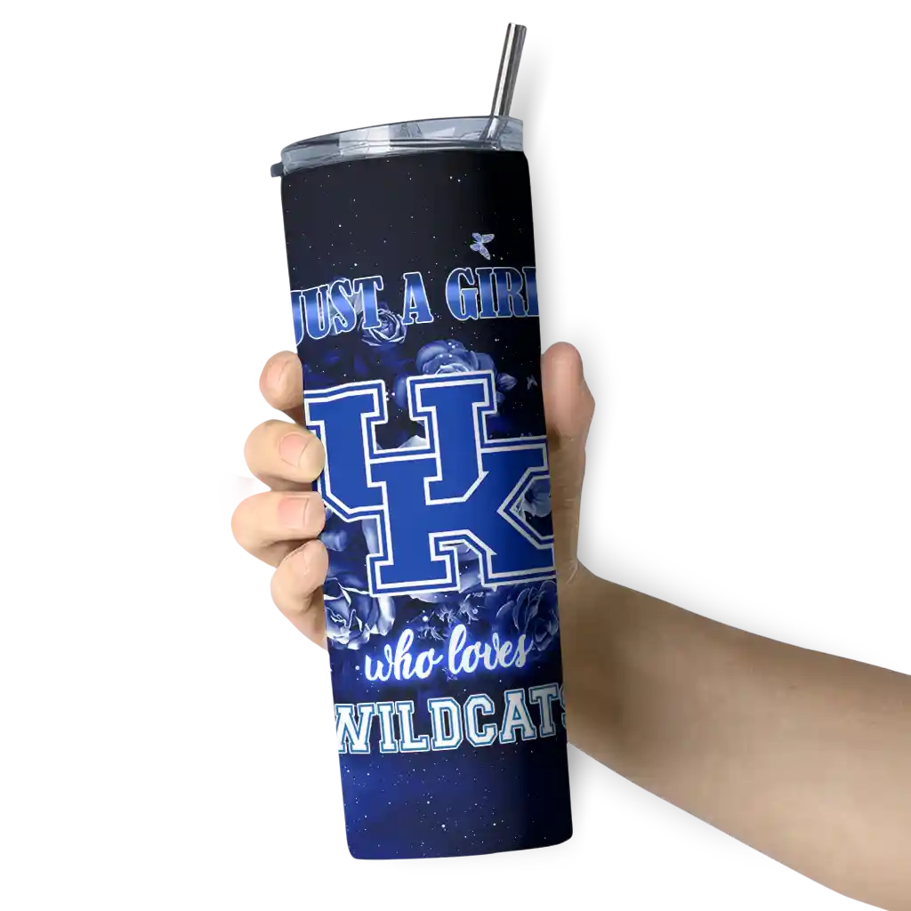 The Custom Kentucky Wildcats Rose Romance Blue Black Skinny Tumbler tumbler is the perfect way to stay refreshed while showing off your pride for Kentucky Wildcats. With its double-wall insulation, your drinks stay at the right temperature for hours, whether you're enjoying a hot coffee or keeping your iced drink cold. What's inside? You’ll find 1 stainless steel tumbler, 1 clear lid, and 1 removable straw. It's the perfect blend of function and fan spirit! Ergonomically designed for comfort, made from durable stainless steel, and insulated to maintain your drink’s temperature, this tumbler is a must-have for any dedicated NCAA fan.