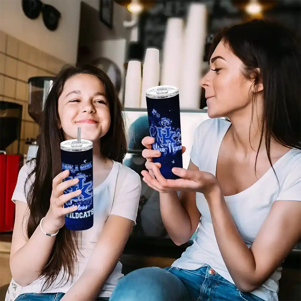 Custom Kentucky Wildcats Rose Romance Blue Black Skinny Tumbler