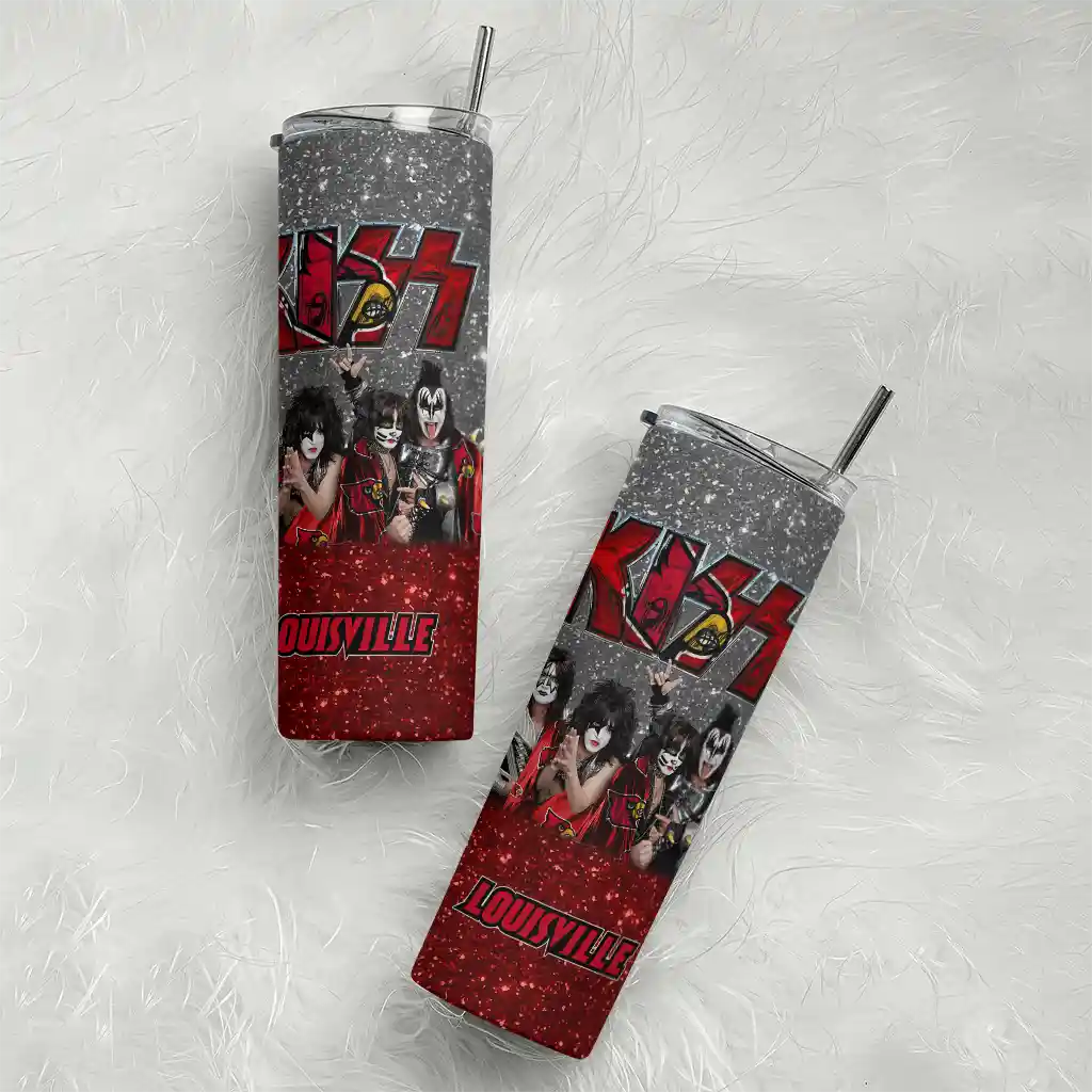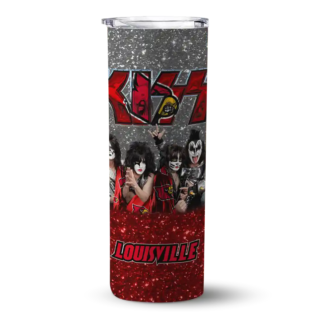 Custom Louisville Cardinals Kiss Band Black Skinny Tumbler