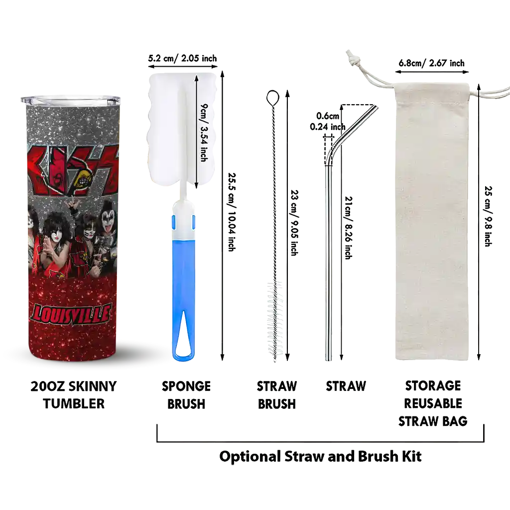 The Custom Louisville Cardinals Kiss Band Black Skinny Tumbler tumbler is the perfect way to stay refreshed while showing off your pride for Louisville Cardinals. With its double-wall insulation, your drinks stay at the right temperature for hours, whether you're enjoying a hot coffee or keeping your iced drink cold. What's inside? You’ll find 1 stainless steel tumbler, 1 clear lid, and 1 removable straw. It's the perfect blend of function and fan spirit! Ergonomically designed for comfort, made from durable stainless steel, and insulated to maintain your drink’s temperature, this tumbler is a must-have for any dedicated NCAA fan.