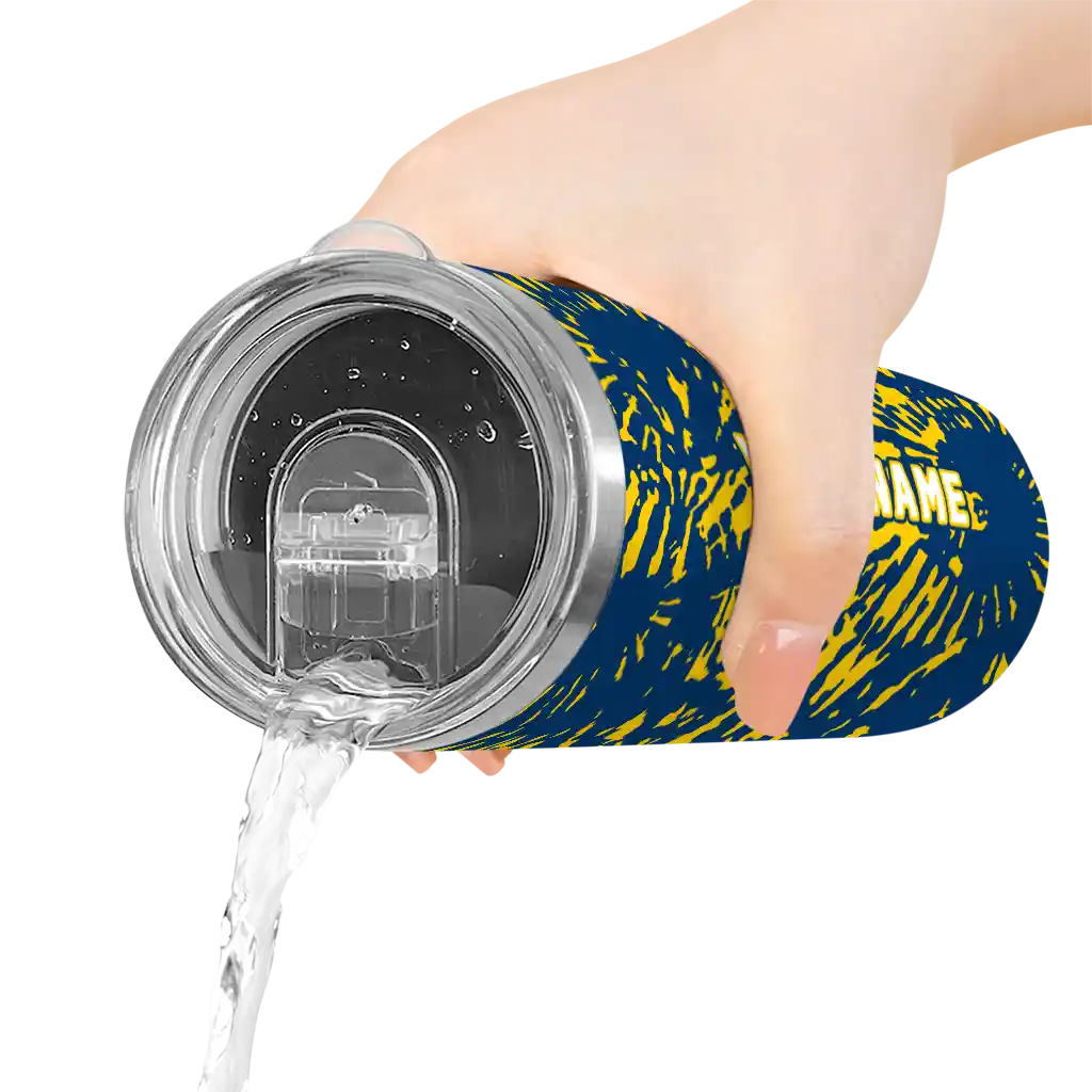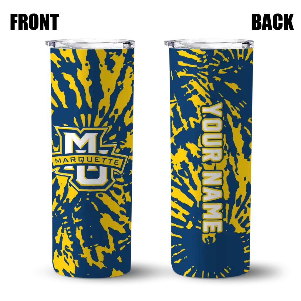 The Custom Marquette Golden Eagles Helmet Belt Blue Black Skinny Tumbler tumbler is the perfect way to stay refreshed while showing off your pride for Marquette Golden Eagles. With its double-wall insulation, your drinks stay at the right temperature for hours, whether you're enjoying a hot coffee or keeping your iced drink cold. What's inside? You’ll find 1 stainless steel tumbler, 1 clear lid, and 1 removable straw. It's the perfect blend of function and fan spirit! Ergonomically designed for comfort, made from durable stainless steel, and insulated to maintain your drink’s temperature, this tumbler is a must-have for any dedicated NCAA fan.