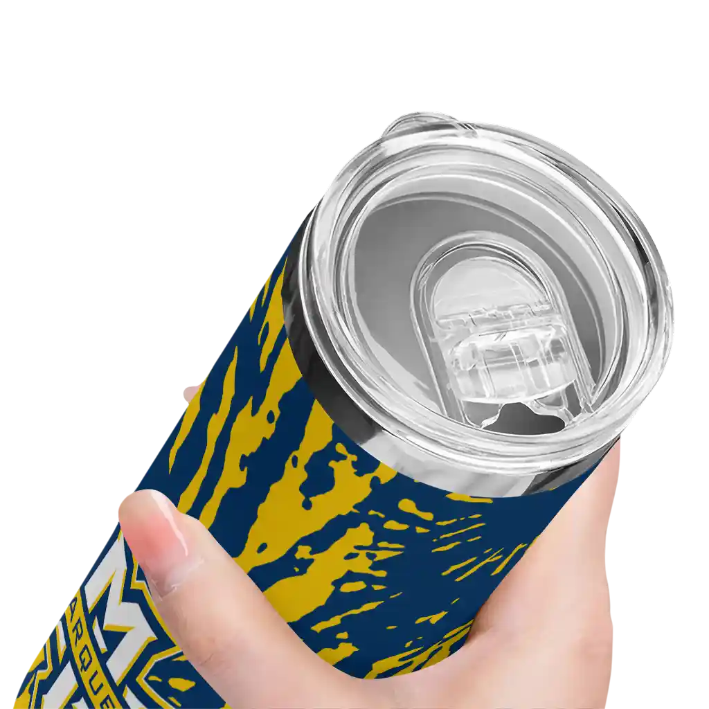 Introducing the Marquette Golden Eagles Tumblers from NCAA Fan Pro —where fan pride meets practical design. This slim tumbler is created for NCAA fans who want their drinks at the perfect temperature while displaying their school pride. The double-wall insulation ensures your hot beverages stay warm and your cold drinks stay chilled for hours, so you can enjoy your drinks at their best, whether you're at a game, tailgate, or on the go.