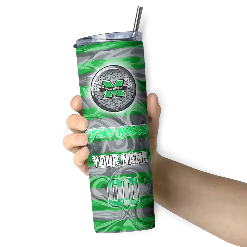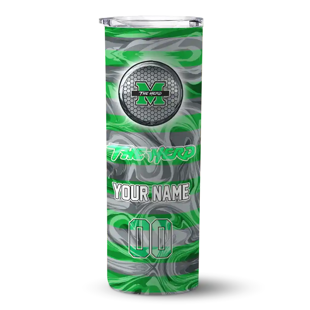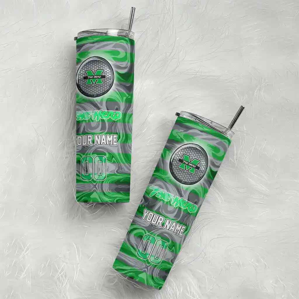 Custom Marshall Thundering Herd Patterned Waves Green Skinny Tumbler
