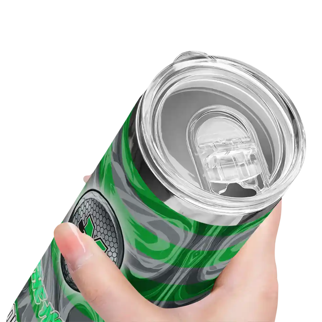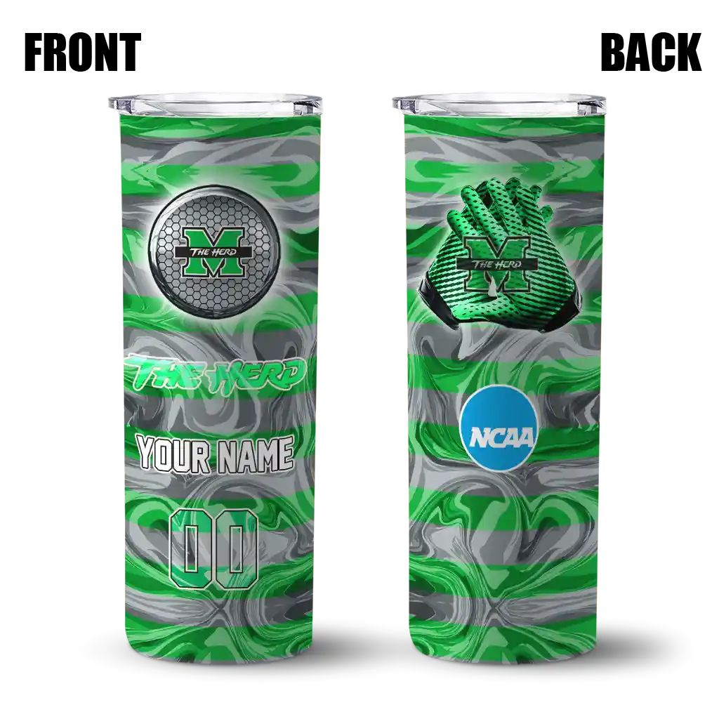 The Customized Marshall Thundering Herd Helmet Belt Green Black Skinny Tumbler tumbler is the perfect way to stay refreshed while showing off your pride for Marshall Thundering Herd. With its double-wall insulation, your drinks stay at the right temperature for hours, whether you're enjoying a hot coffee or keeping your iced drink cold. What's inside? You’ll find 1 stainless steel tumbler, 1 clear lid, and 1 removable straw. It's the perfect blend of function and fan spirit! Ergonomically designed for comfort, made from durable stainless steel, and insulated to maintain your drink’s temperature, this tumbler is a must-have for any dedicated NCAA fan.