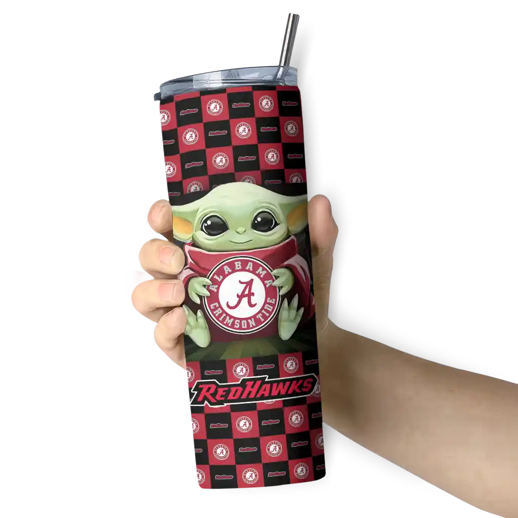 Custom Miami RedHawks Yoda Cozy Red Black Skinny Tumbler