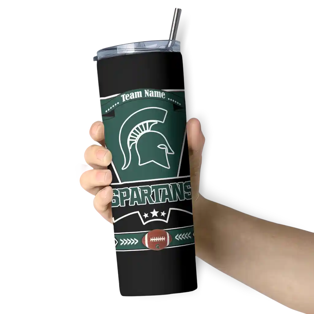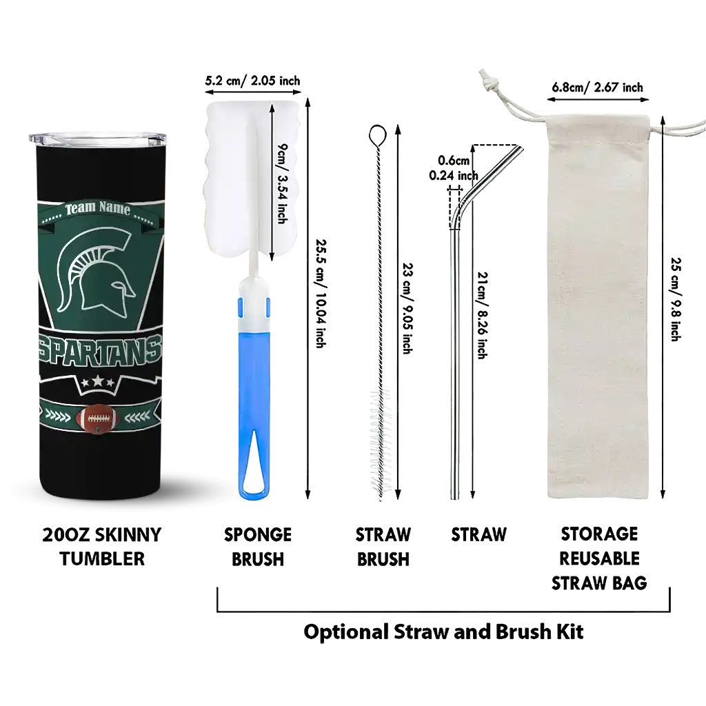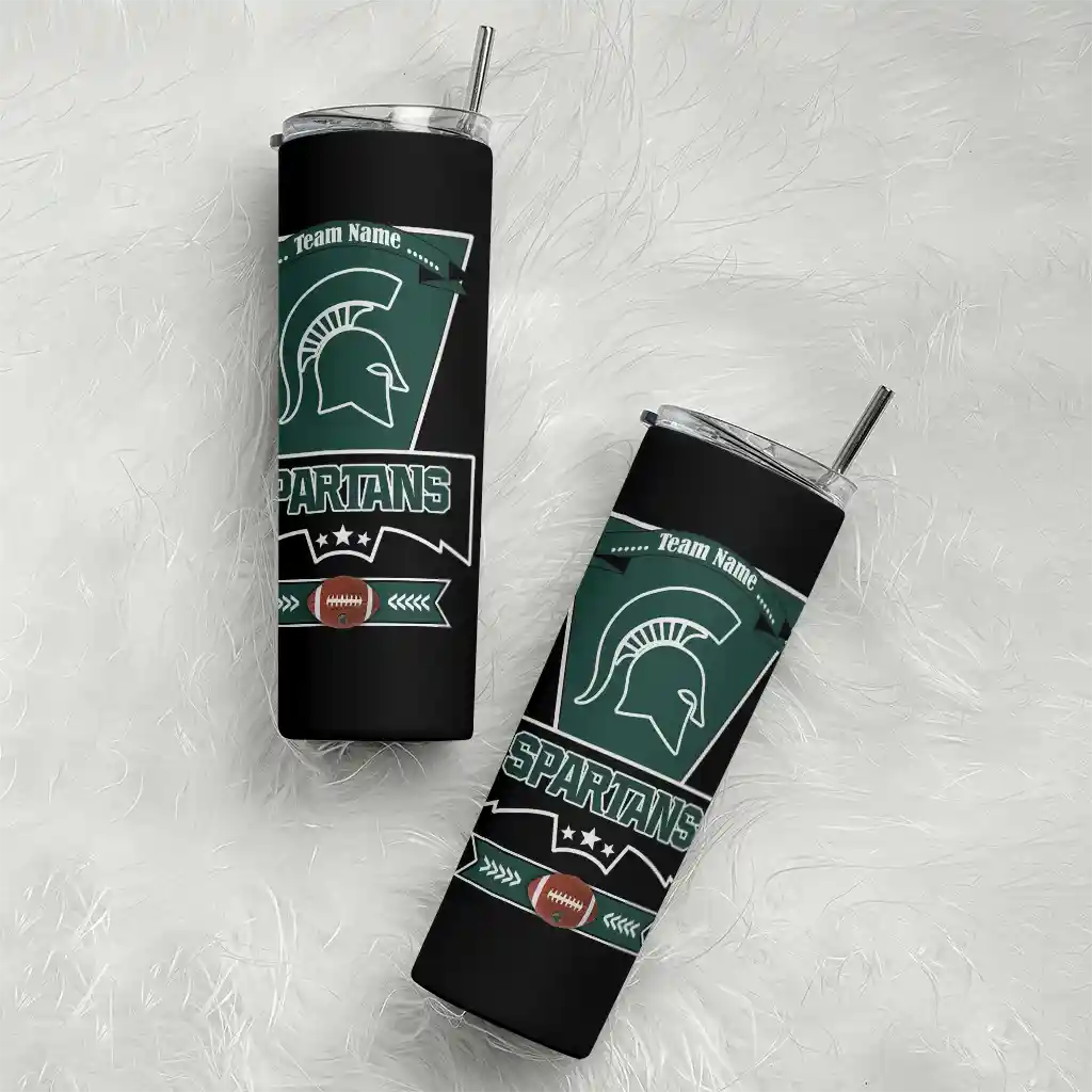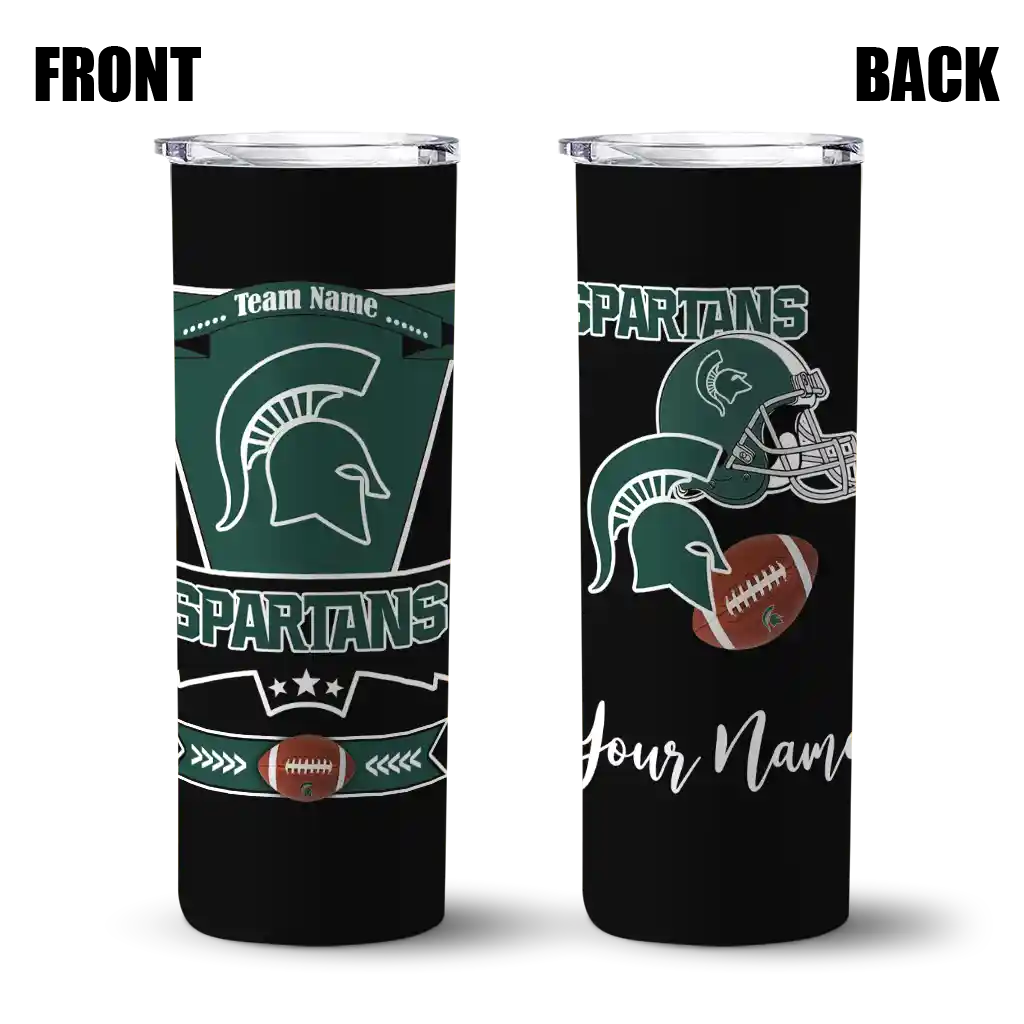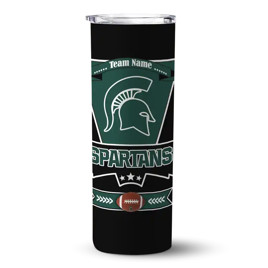 The Custom Michigan State Spartans Helmet Belt Green Black Skinny Tumbler tumbler is the perfect way to stay refreshed while showing off your pride for Michigan State Spartans. With its double-wall insulation, your drinks stay at the right temperature for hours, whether you're enjoying a hot coffee or keeping your iced drink cold. What's inside? You’ll find 1 stainless steel tumbler, 1 clear lid, and 1 removable straw. It's the perfect blend of function and fan spirit! Ergonomically designed for comfort, made from durable stainless steel, and insulated to maintain your drink’s temperature, this tumbler is a must-have for any dedicated NCAA fan.