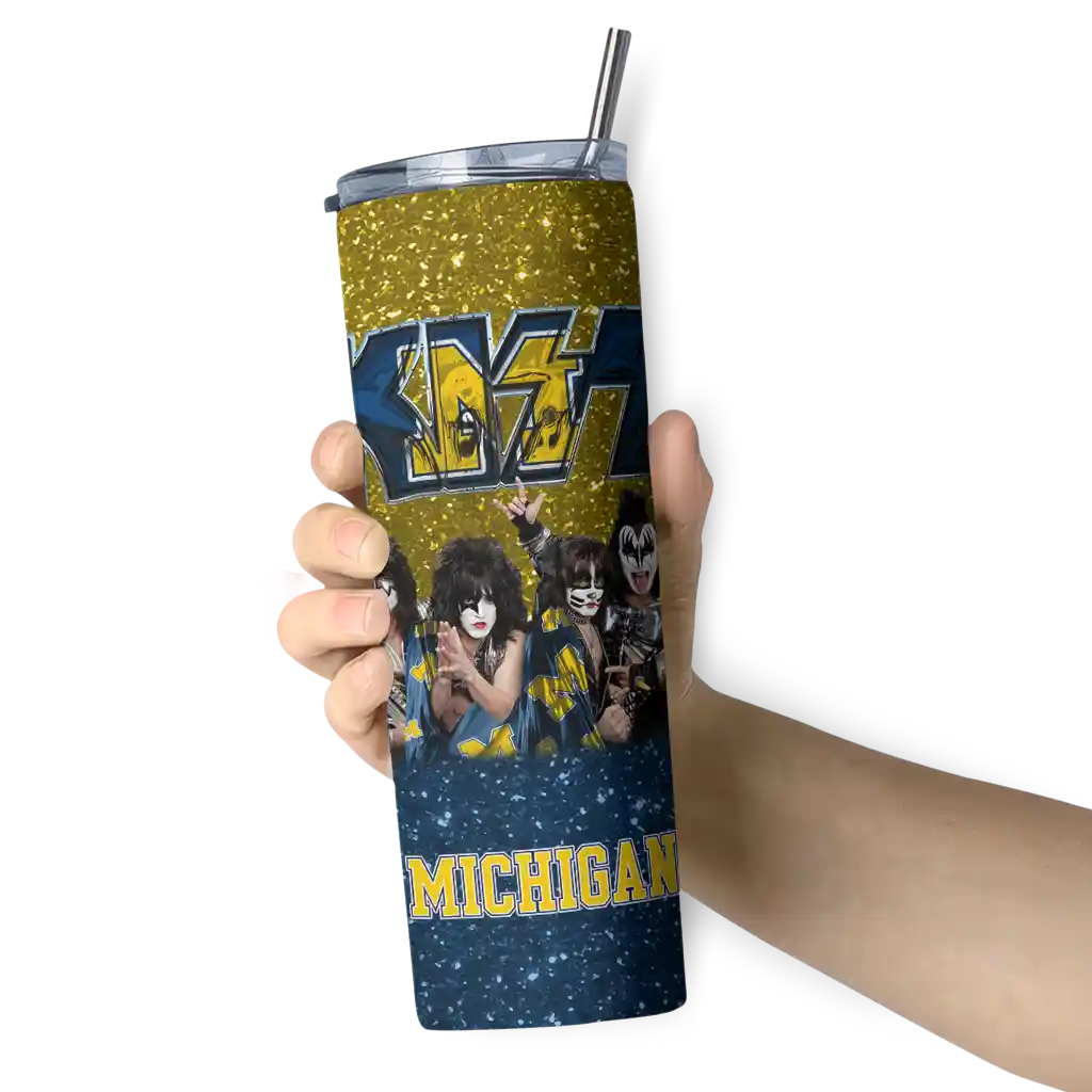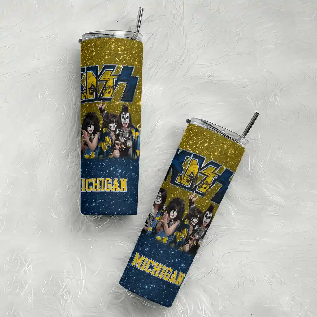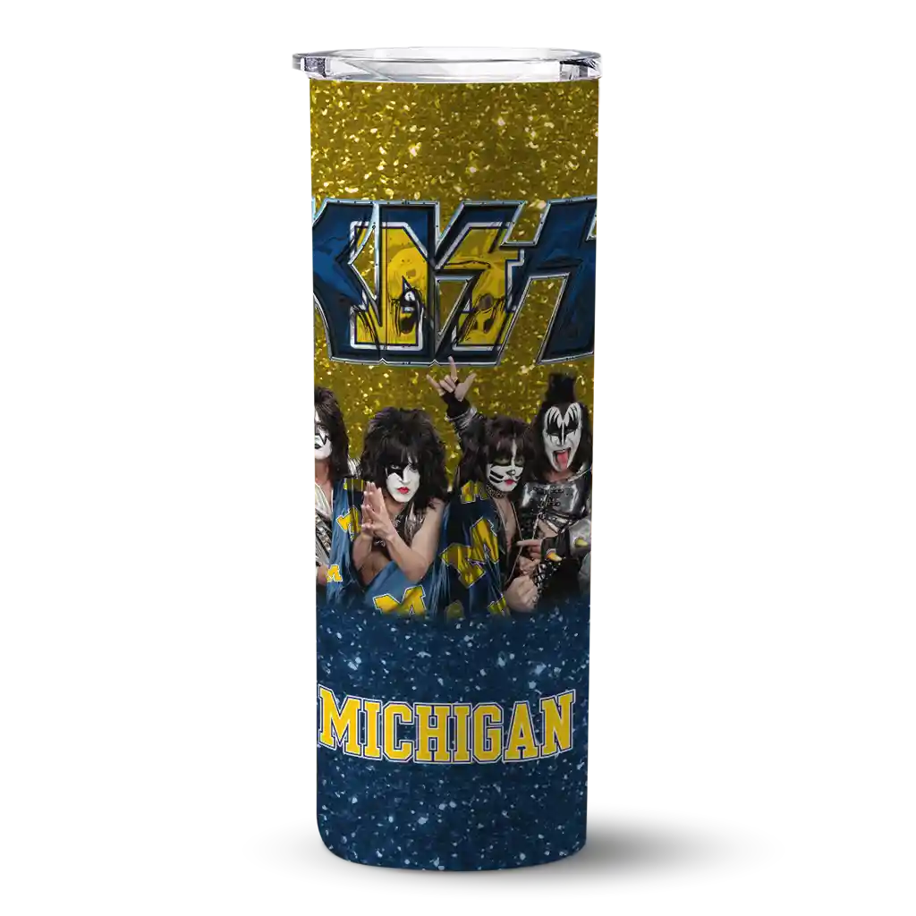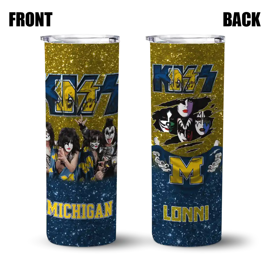 Custom Michigan Wolverines Kiss Band Maize Skinny Tumbler
