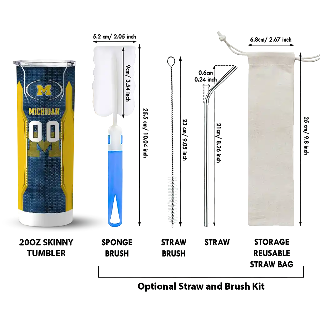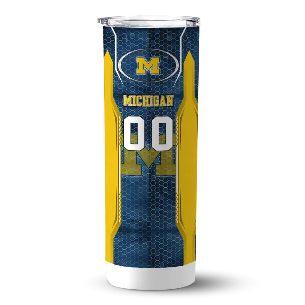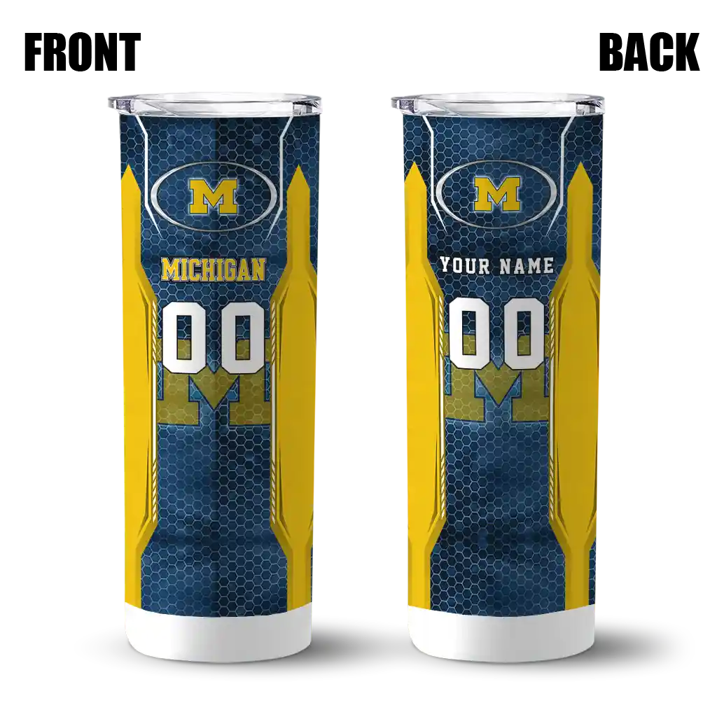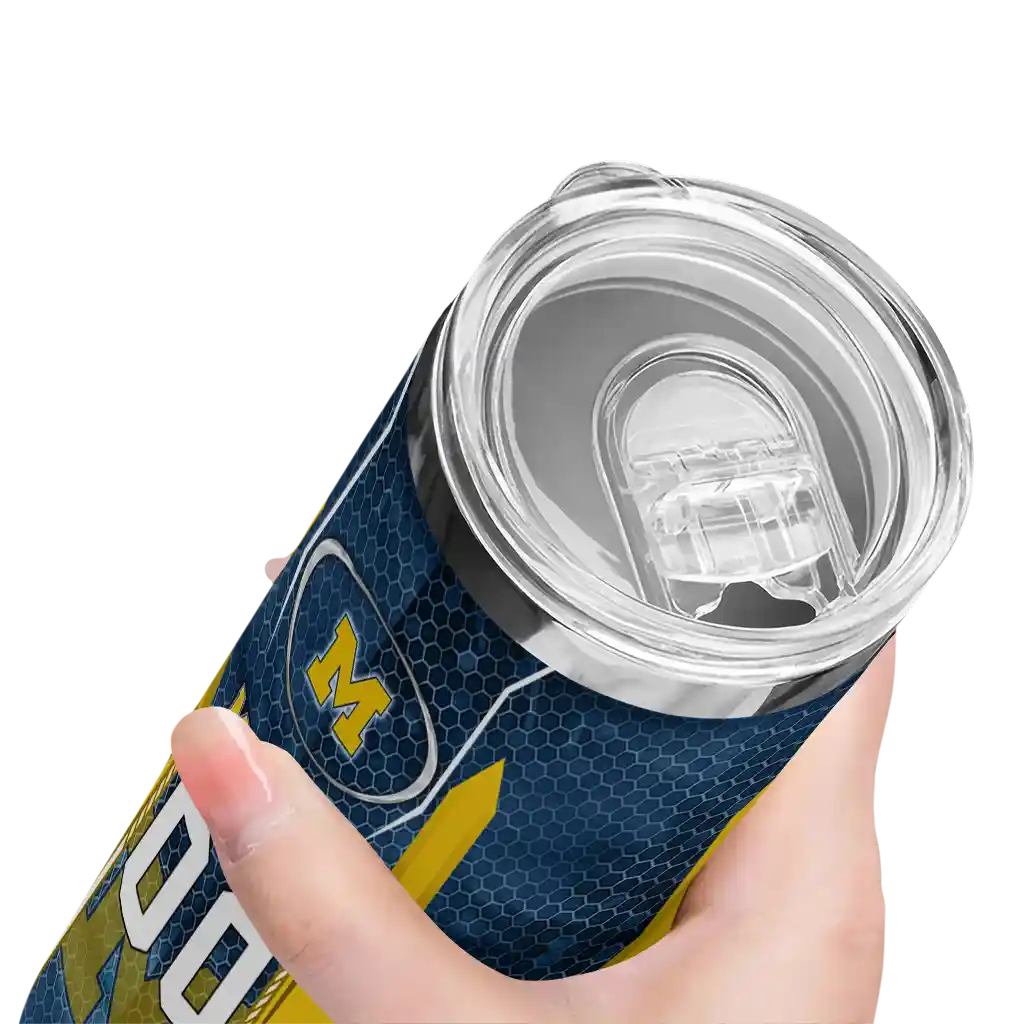 The Custom Michigan Wolverines Stacked Diamond Blue Skinny Tumbler tumbler is the perfect way to stay refreshed while showing off your pride for Michigan Wolverines. With its double-wall insulation, your drinks stay at the right temperature for hours, whether you're enjoying a hot coffee or keeping your iced drink cold. What's inside? You’ll find 1 stainless steel tumbler, 1 clear lid, and 1 removable straw. It's the perfect blend of function and fan spirit! Ergonomically designed for comfort, made from durable stainless steel, and insulated to maintain your drink’s temperature, this tumbler is a must-have for any dedicated NCAA fan.