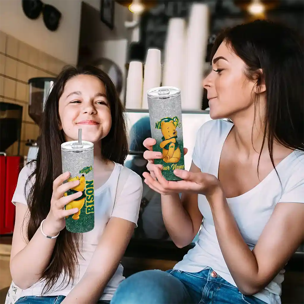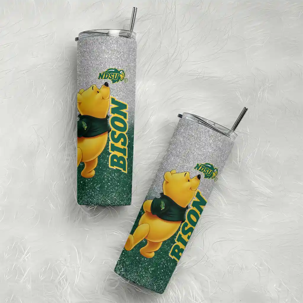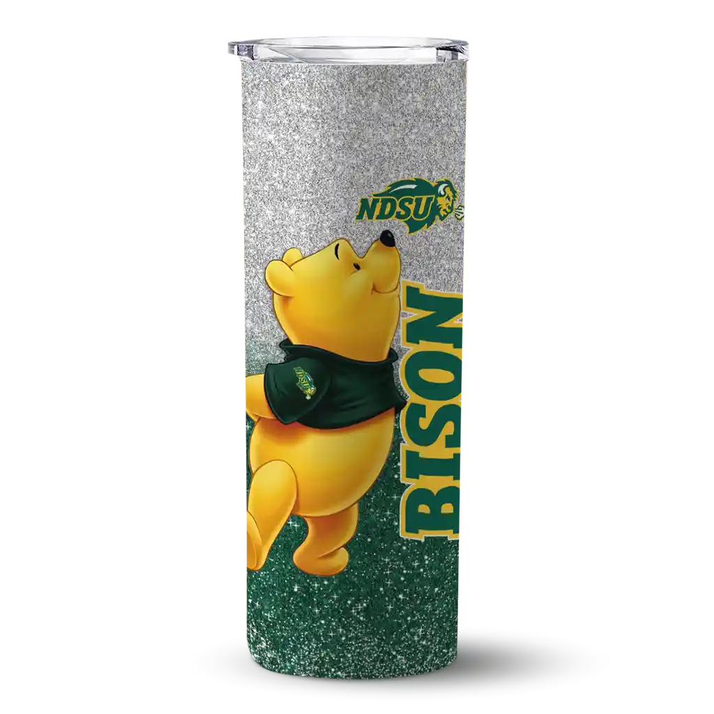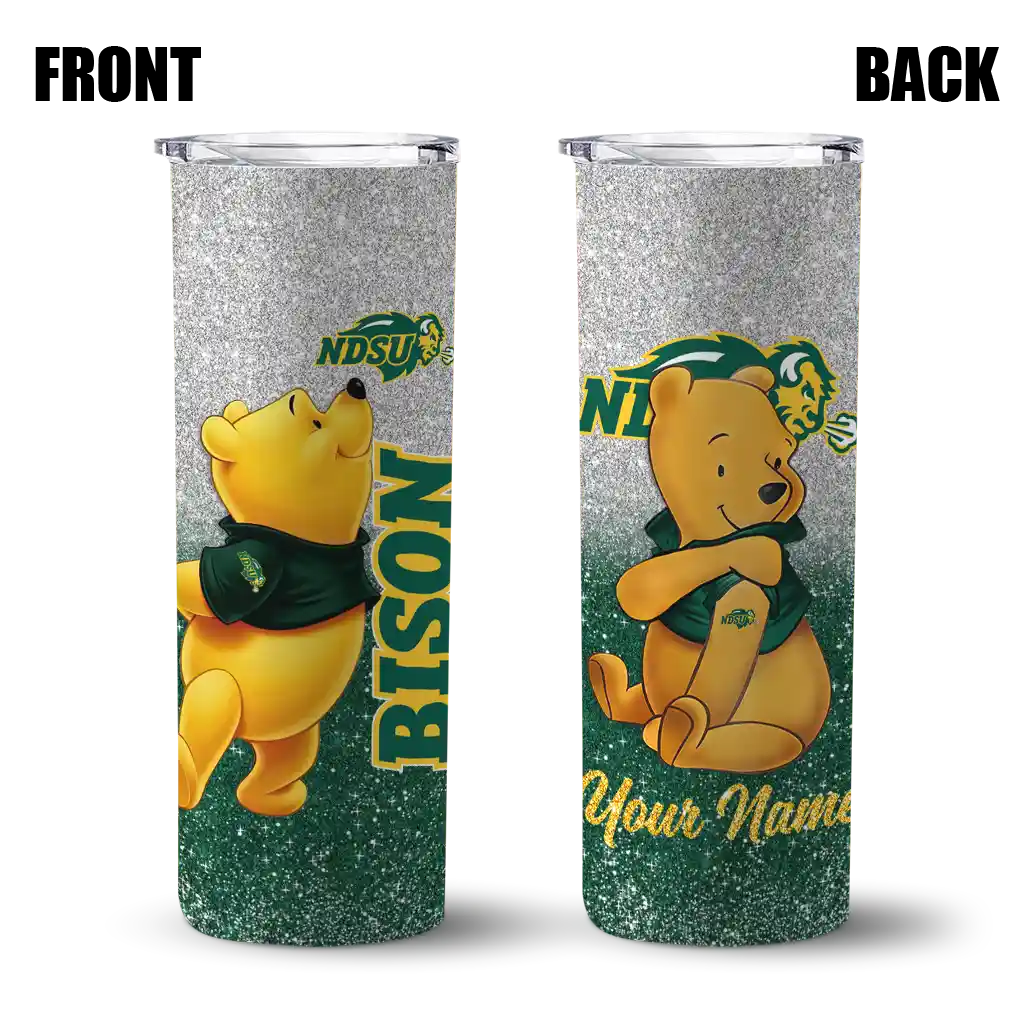 Custom North Dakota State Bison Winnie the Pooh Green Gray Skinny Tumbler