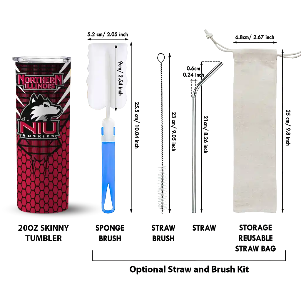 The Custom Northern Illinois Huskies Sparkle Drip Red Skinny Tumbler tumbler is the perfect way to stay refreshed while showing off your pride for Northern Illinois Huskies. With its double-wall insulation, your drinks stay at the right temperature for hours, whether you're enjoying a hot coffee or keeping your iced drink cold. What's inside? You’ll find 1 stainless steel tumbler, 1 clear lid, and 1 removable straw. It's the perfect blend of function and fan spirit! Ergonomically designed for comfort, made from durable stainless steel, and insulated to maintain your drink’s temperature, this tumbler is a must-have for any dedicated NCAA fan.