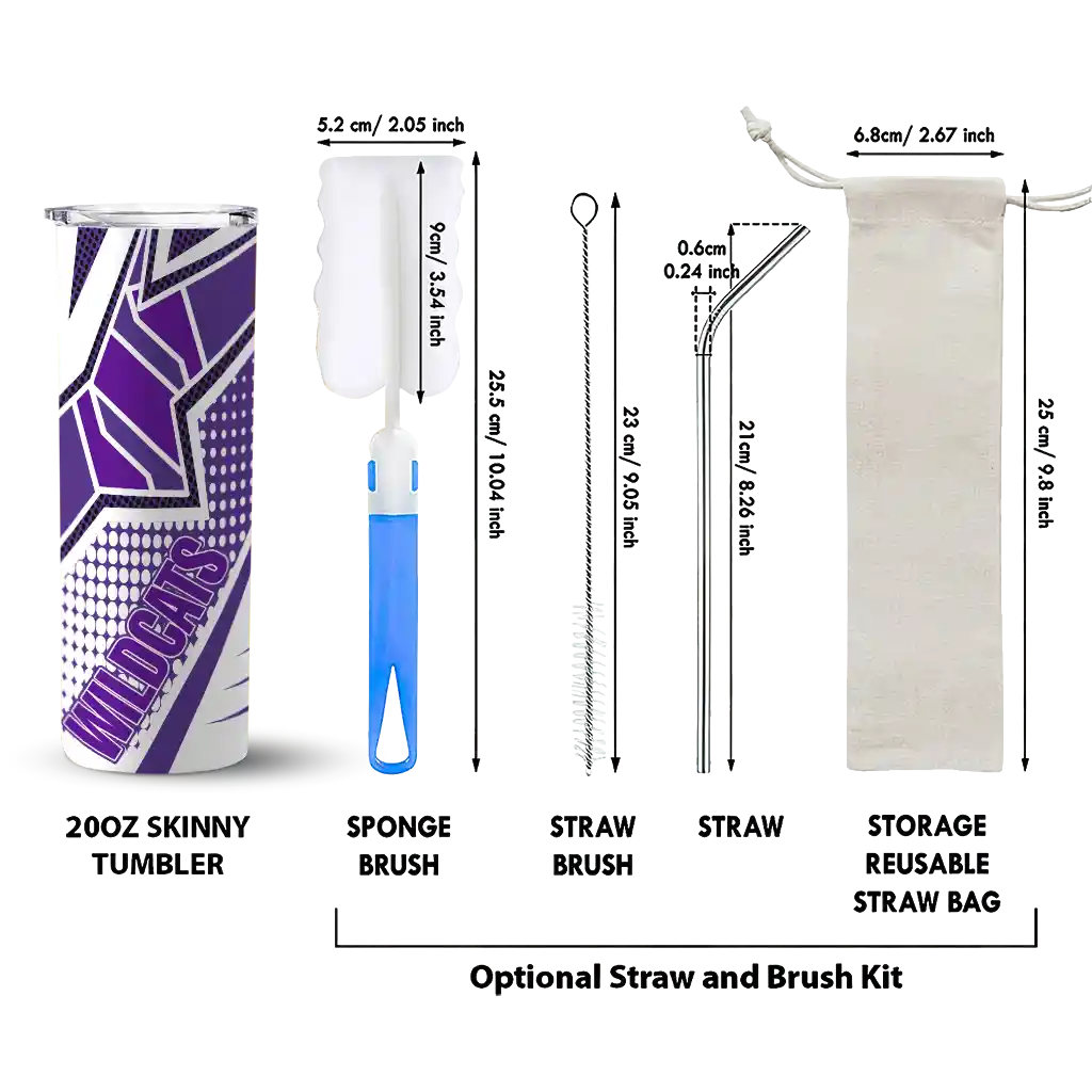 The Custom Northwestern Wildcats Web Stripes Purple White Skinny Tumbler tumbler is the perfect way to stay refreshed while showing off your pride for Northwestern Wildcats. With its double-wall insulation, your drinks stay at the right temperature for hours, whether you're enjoying a hot coffee or keeping your iced drink cold. What's inside? You’ll find 1 stainless steel tumbler, 1 clear lid, and 1 removable straw. It's the perfect blend of function and fan spirit! Ergonomically designed for comfort, made from durable stainless steel, and insulated to maintain your drink’s temperature, this tumbler is a must-have for any dedicated NCAA fan.