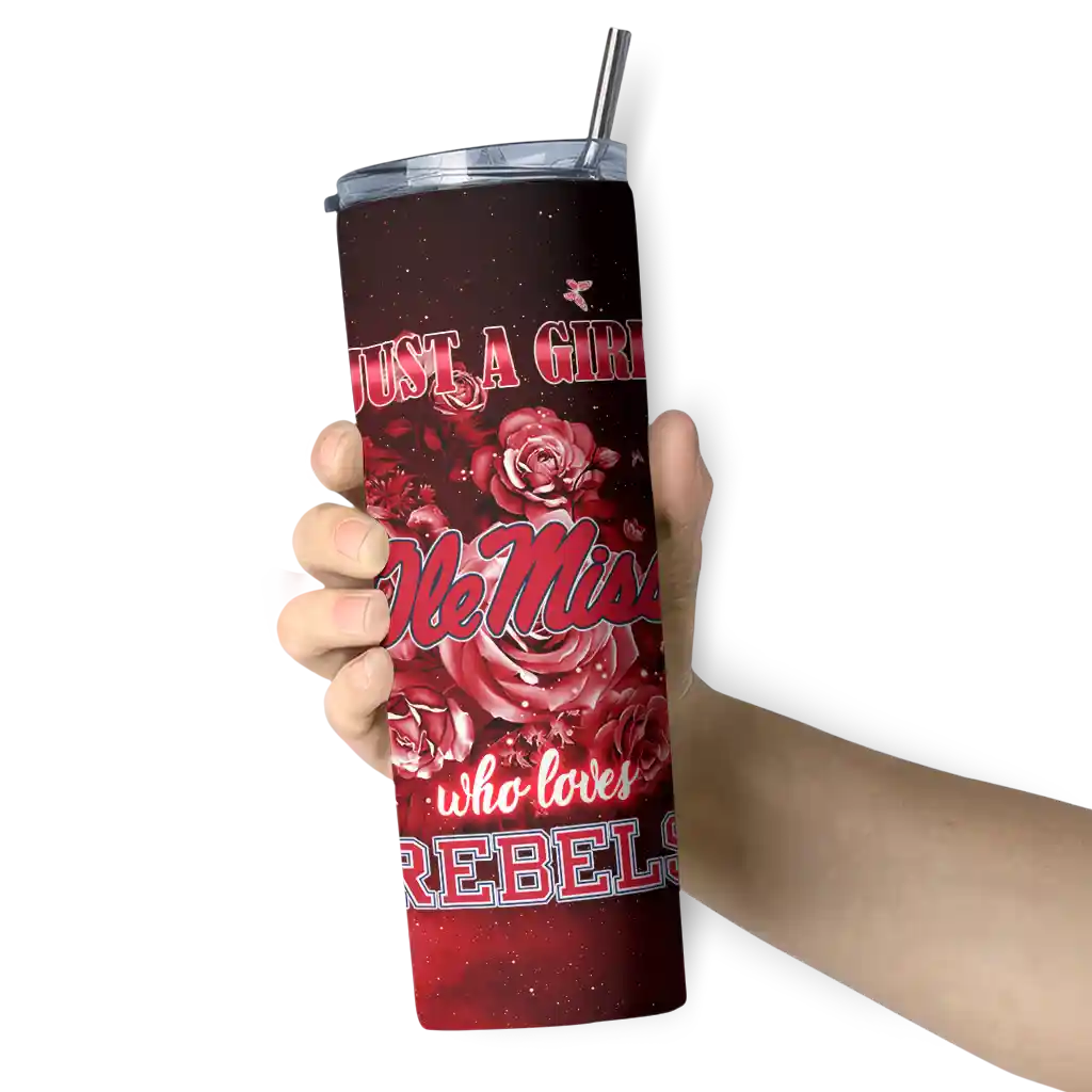 Custom Ole Miss Rebels Rose Romance Red Black Skinny Tumbler