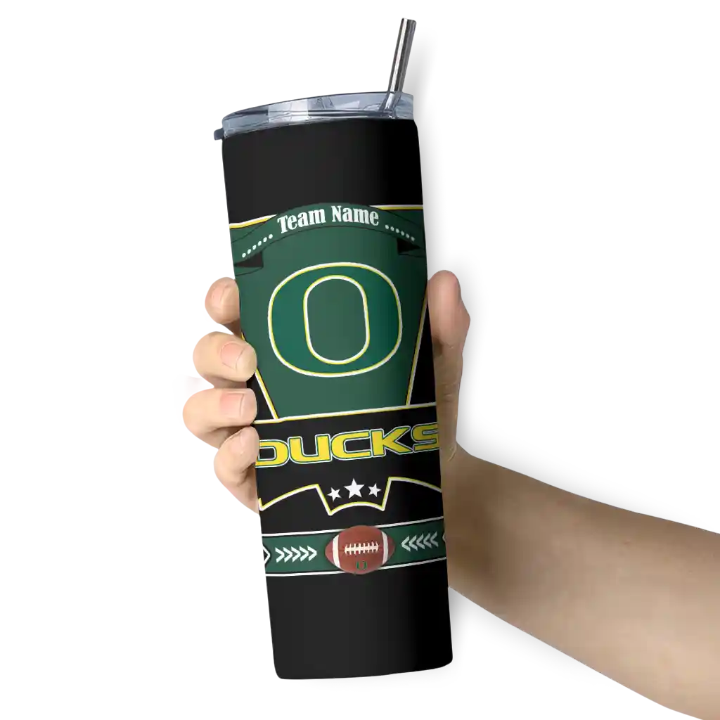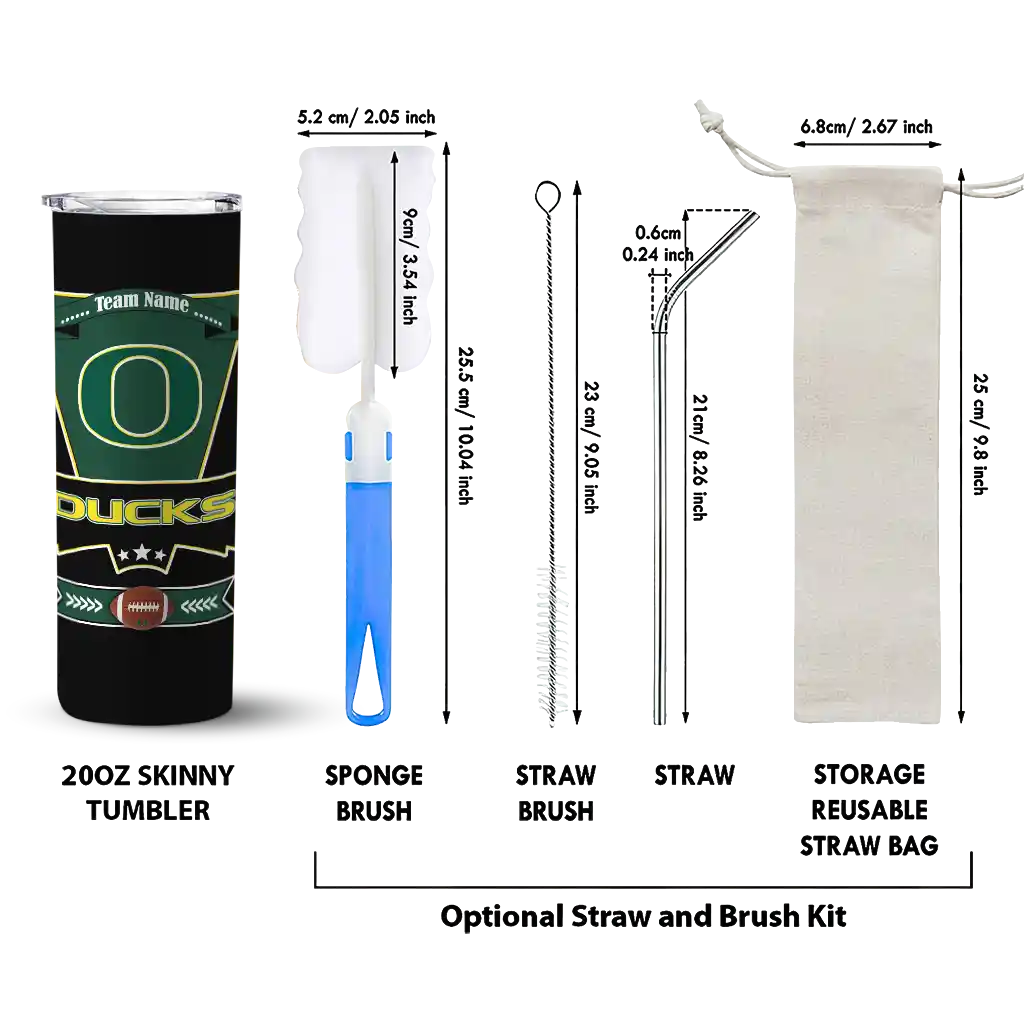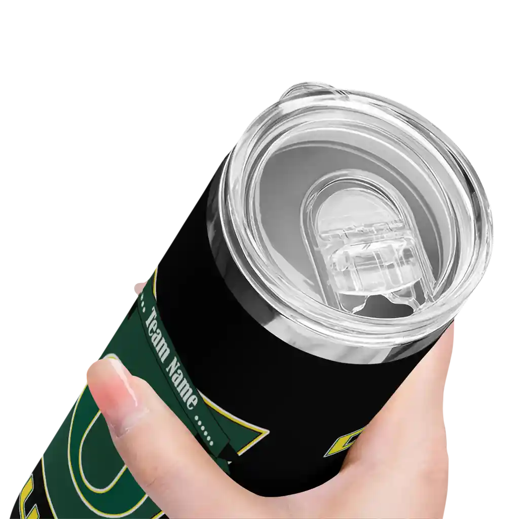 The Custom Oregon Ducks Helmet Belt Green Black Skinny Tumbler tumbler is the perfect way to stay refreshed while showing off your pride for Oregon Ducks. With its double-wall insulation, your drinks stay at the right temperature for hours, whether you're enjoying a hot coffee or keeping your iced drink cold. What's inside? You’ll find 1 stainless steel tumbler, 1 clear lid, and 1 removable straw. It's the perfect blend of function and fan spirit! Ergonomically designed for comfort, made from durable stainless steel, and insulated to maintain your drink’s temperature, this tumbler is a must-have for any dedicated NCAA fan.