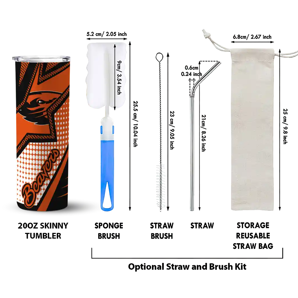 The Customized Oregon State Beavers Star Pop Orange Black Skinny Tumbler tumbler is the perfect way to stay refreshed while showing off your pride for Oregon State Beavers. With its double-wall insulation, your drinks stay at the right temperature for hours, whether you're enjoying a hot coffee or keeping your iced drink cold. What's inside? You’ll find 1 stainless steel tumbler, 1 clear lid, and 1 removable straw. It's the perfect blend of function and fan spirit! Ergonomically designed for comfort, made from durable stainless steel, and insulated to maintain your drink’s temperature, this tumbler is a must-have for any dedicated NCAA fan.