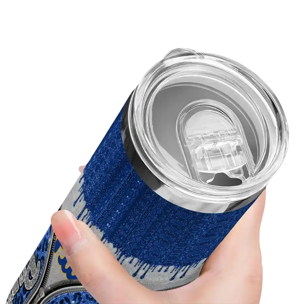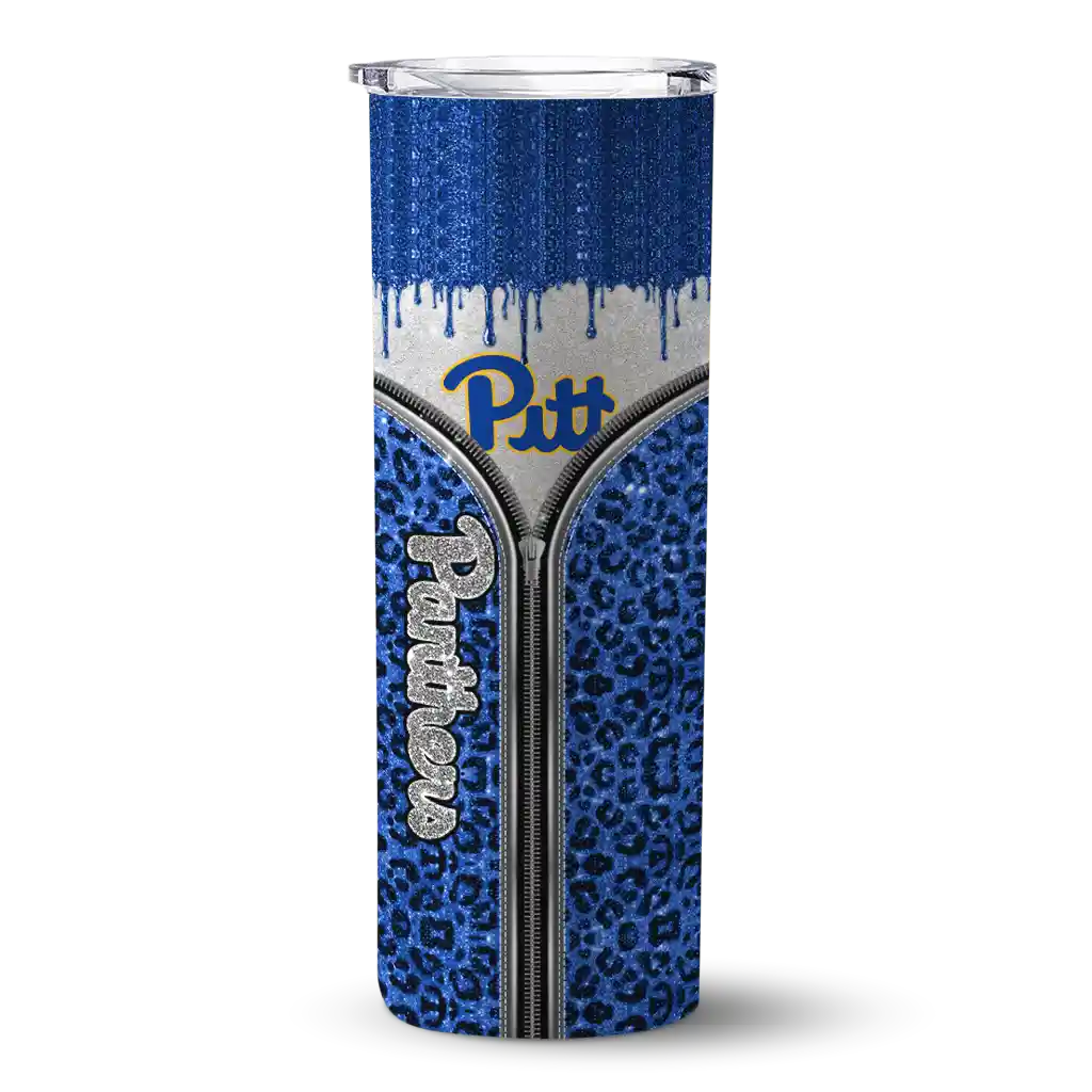 The Custom Pittsburgh Panthers Sparkle Drip Royal Blue Skinny Tumbler tumbler is the perfect way to stay refreshed while showing off your pride for Pittsburgh Panthers. With its double-wall insulation, your drinks stay at the right temperature for hours, whether you're enjoying a hot coffee or keeping your iced drink cold. What's inside? You’ll find 1 stainless steel tumbler, 1 clear lid, and 1 removable straw. It's the perfect blend of function and fan spirit! Ergonomically designed for comfort, made from durable stainless steel, and insulated to maintain your drink’s temperature, this tumbler is a must-have for any dedicated NCAA fan.