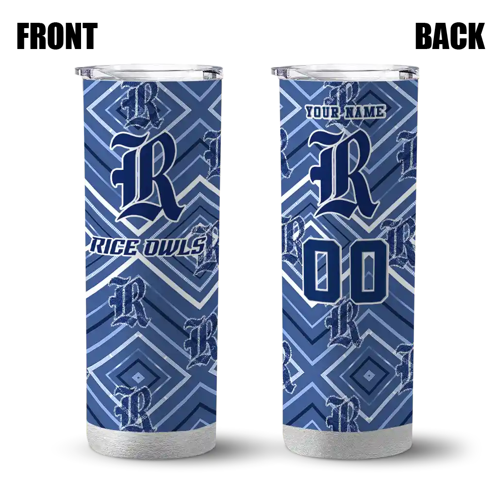 No question about it—the Personalized Rice Owls Bullseye Drips Navy Blue Curved Tumbler is the ultimate way to stay refreshed while rocking your Rice Owls pride. From the stadium to your tailgate, or just chilling at home, this sleek tumbler makes sure you stay hydrated in style. What’s in the box? A stainless steel tumbler, clear lid, and removable straw—all the essentials for keeping your favorite drinks on point!