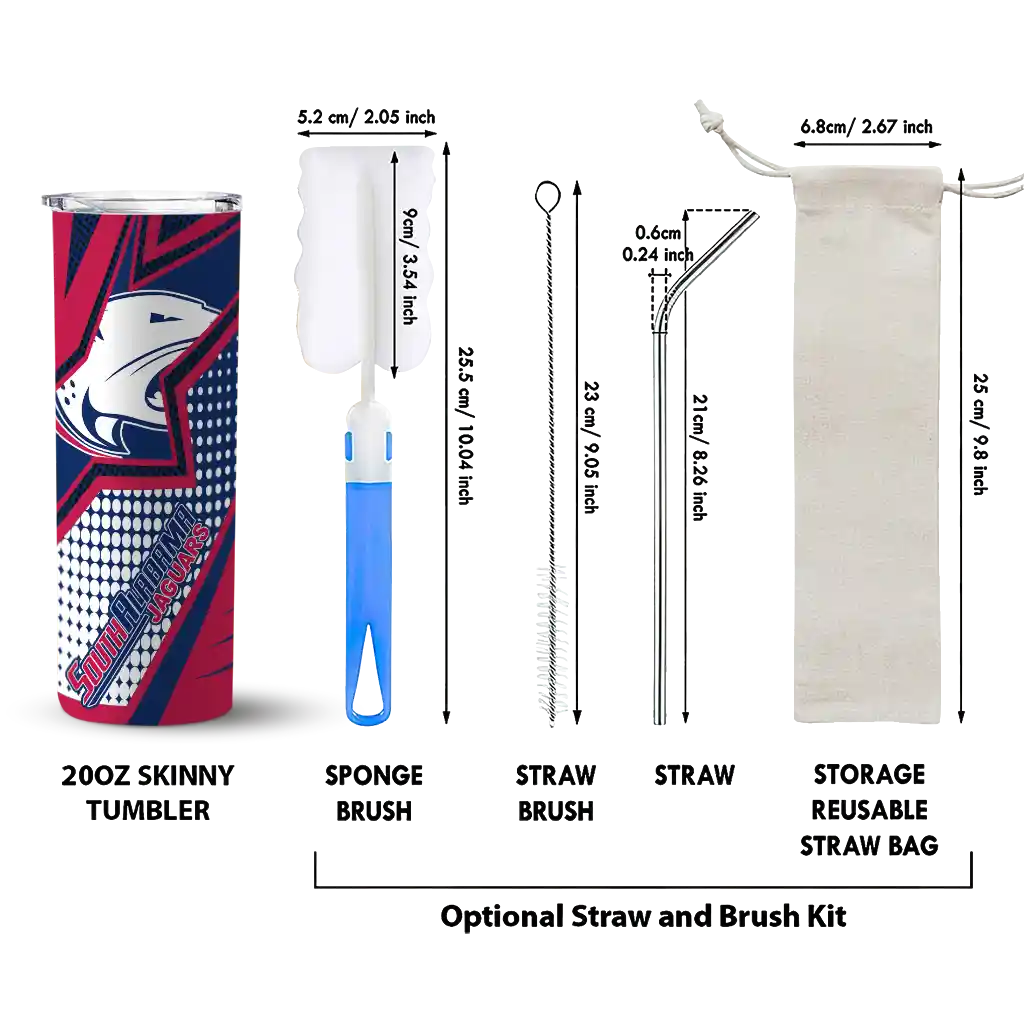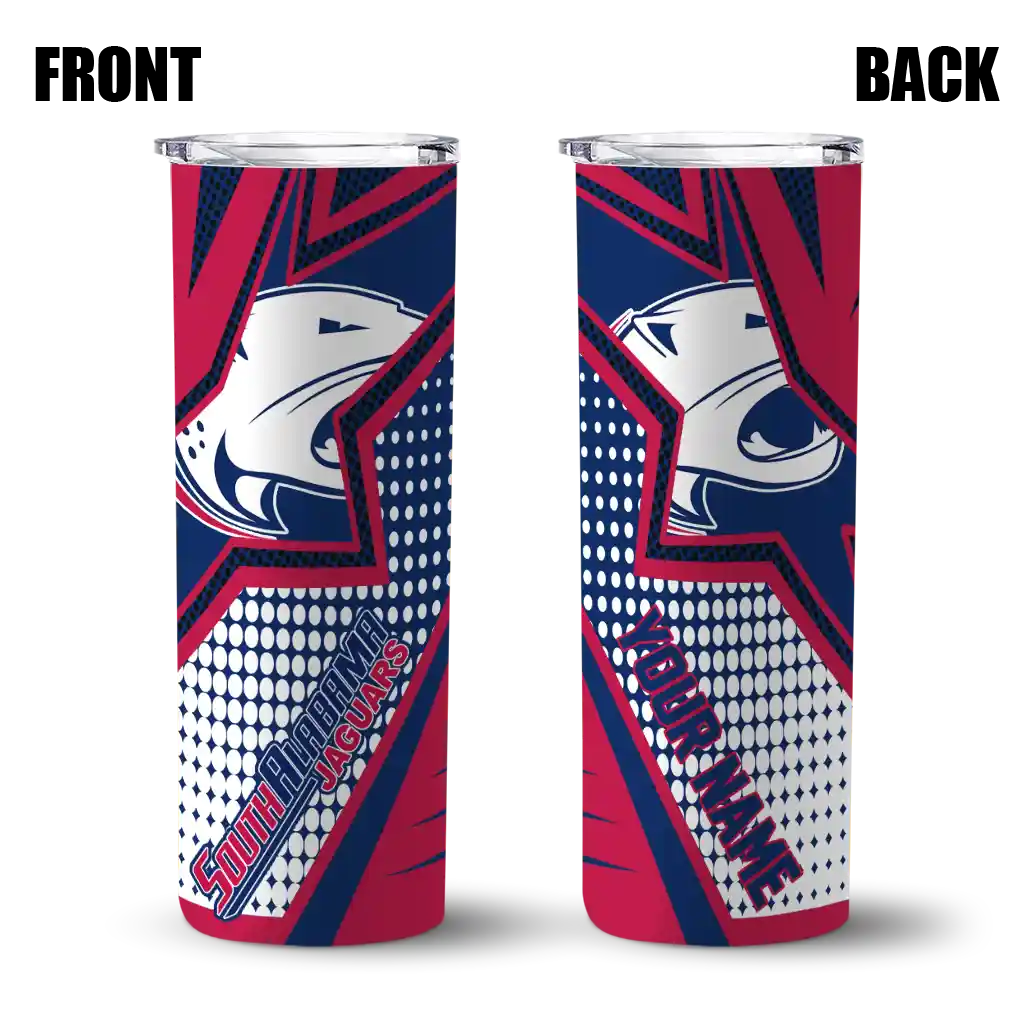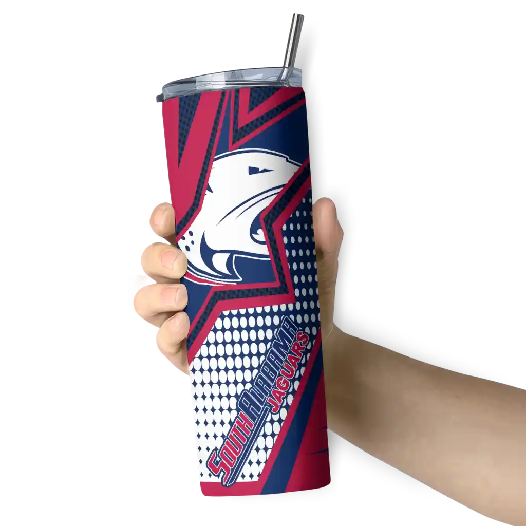 Introducing the South Alabama Jaguars Tumblers from NCAA Fan Pro —where fan pride meets practical design. This slim tumbler is created for NCAA fans who want their drinks at the perfect temperature while displaying their school pride. The double-wall insulation ensures your hot beverages stay warm and your cold drinks stay chilled for hours, so you can enjoy your drinks at their best, whether you're at a game, tailgate, or on the go.