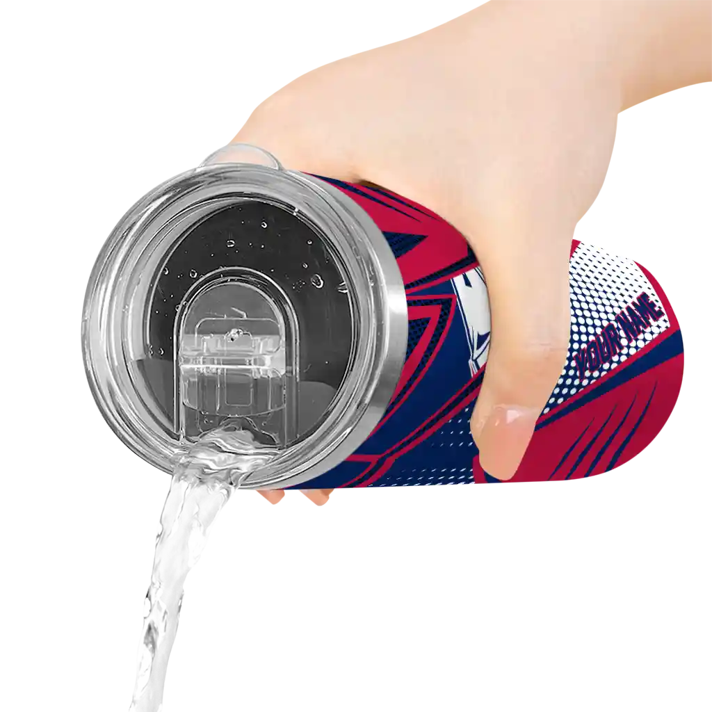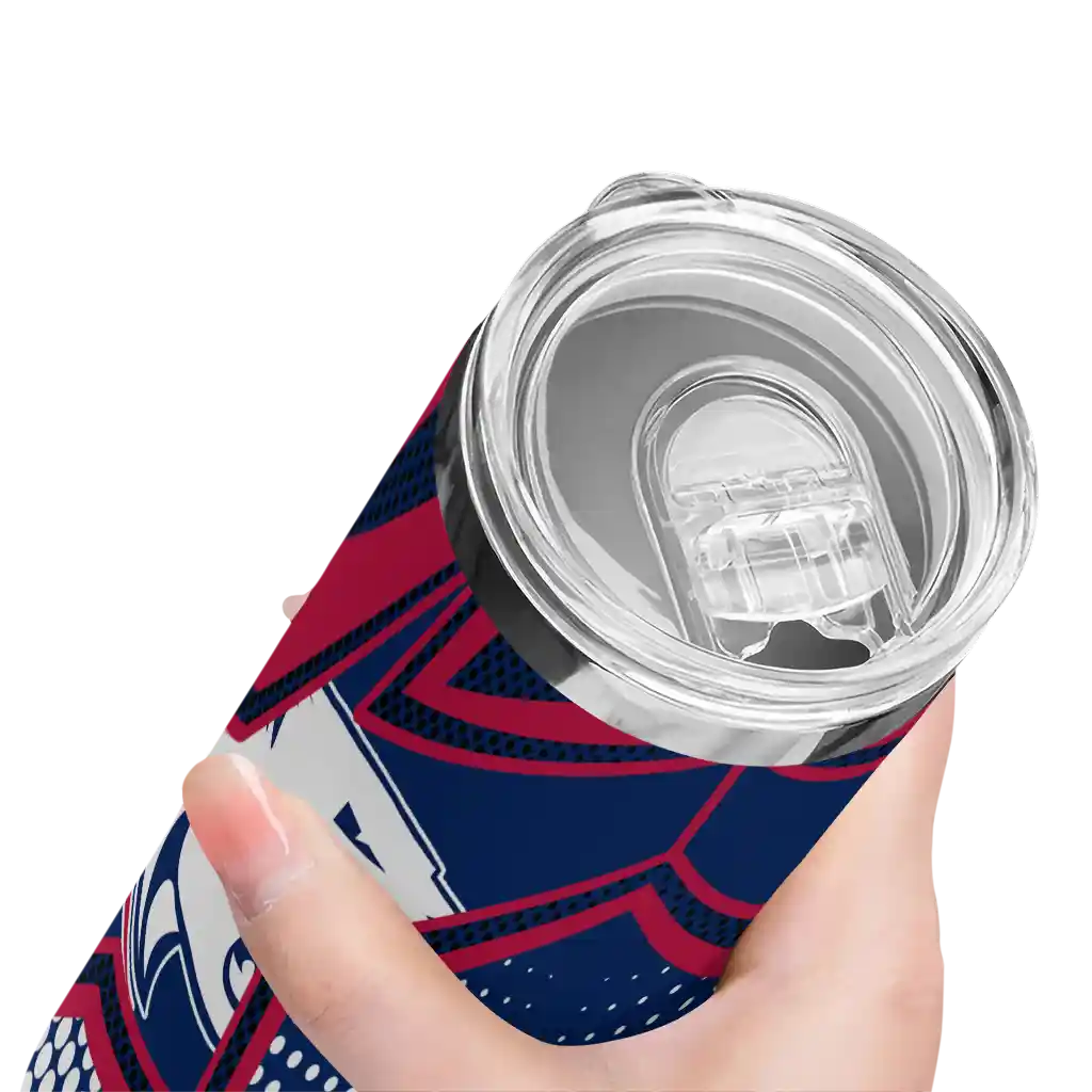 The Custom South Alabama Jaguars Web Stripes Blue White Skinny Tumbler tumbler is the perfect way to stay refreshed while showing off your pride for South Alabama Jaguars. With its double-wall insulation, your drinks stay at the right temperature for hours, whether you're enjoying a hot coffee or keeping your iced drink cold. What's inside? You’ll find 1 stainless steel tumbler, 1 clear lid, and 1 removable straw. It's the perfect blend of function and fan spirit! Ergonomically designed for comfort, made from durable stainless steel, and insulated to maintain your drink’s temperature, this tumbler is a must-have for any dedicated NCAA fan.