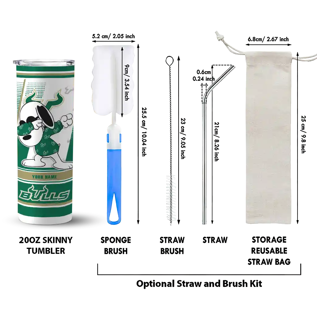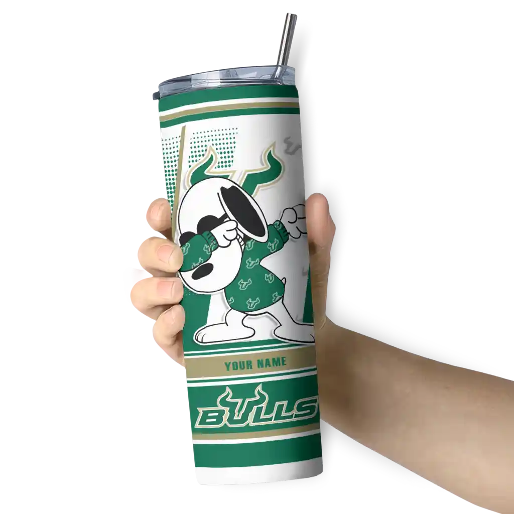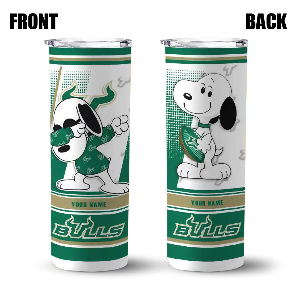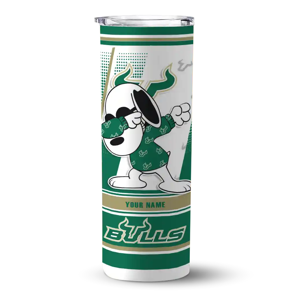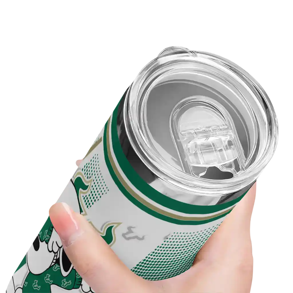 Custom South Florida Bulls Snoopy Dog Green White Skinny Tumbler