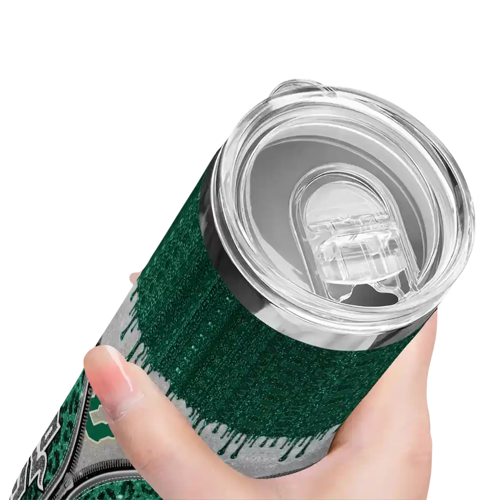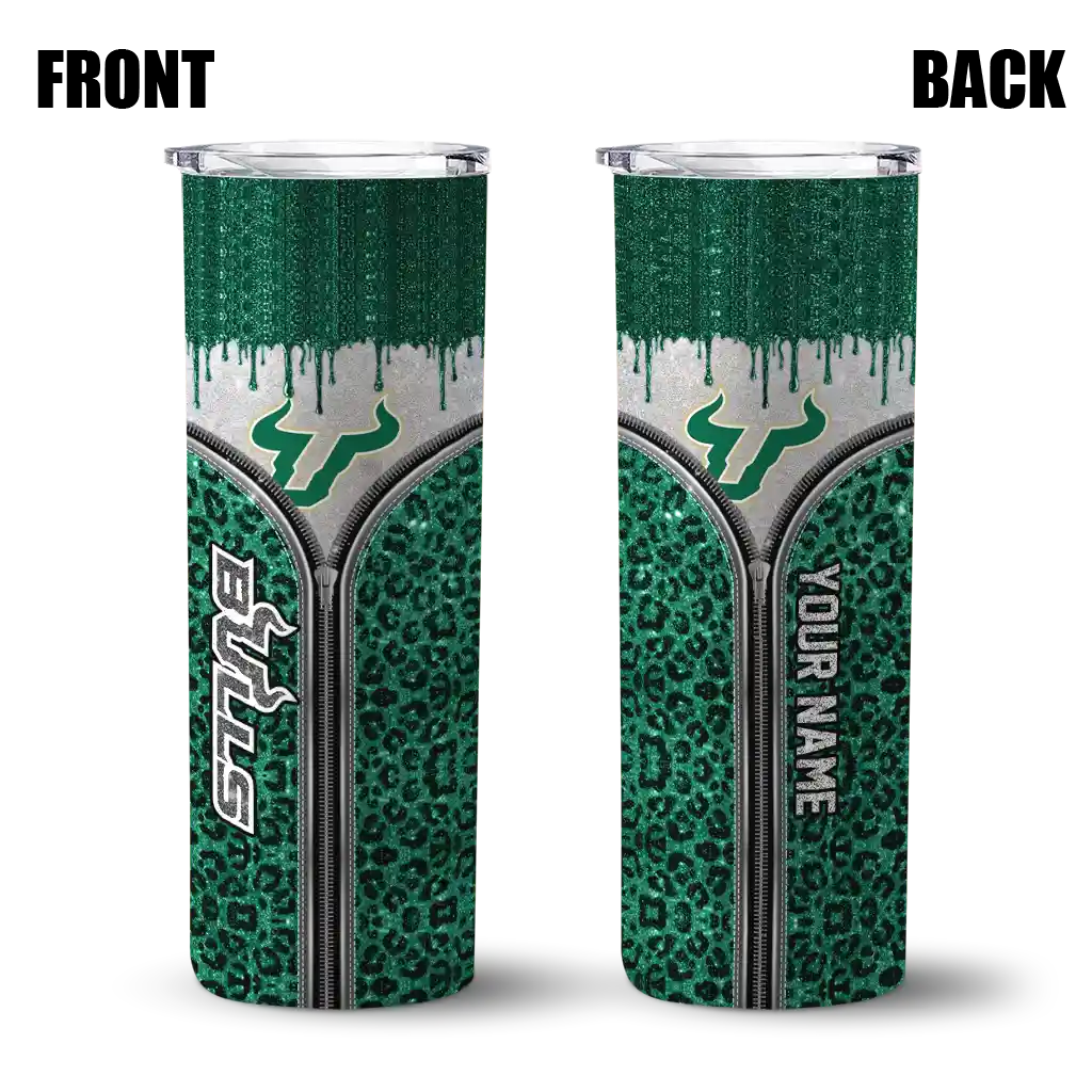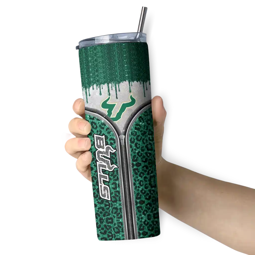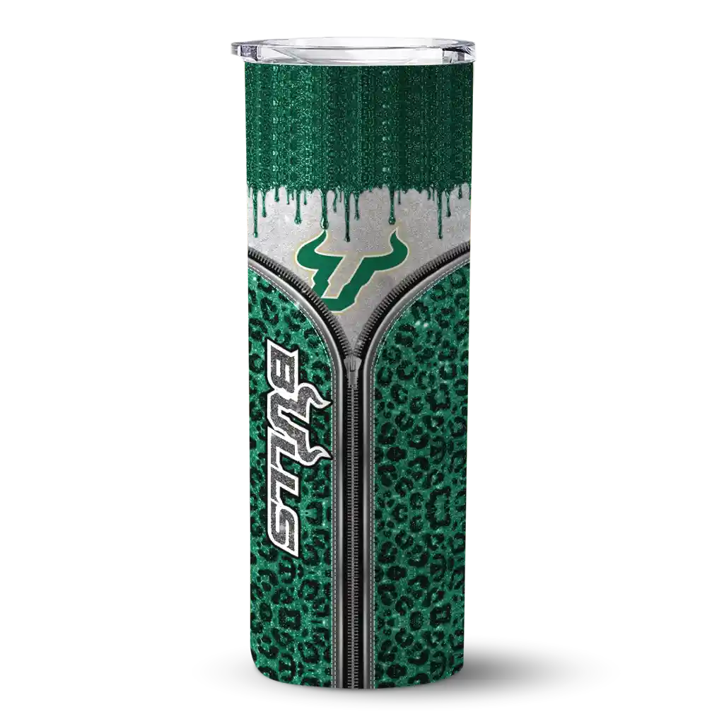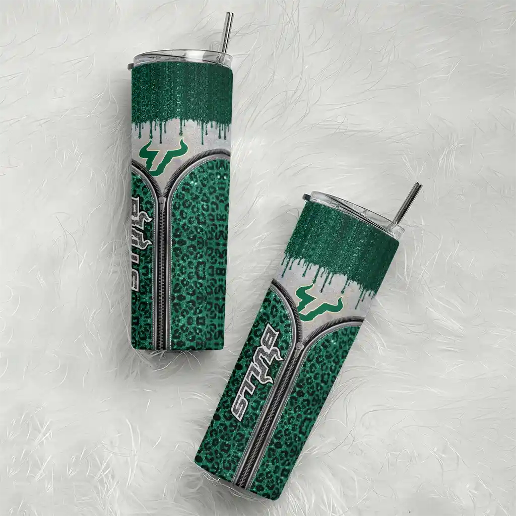 The Custom South Florida Bulls Sparkle Drip Green Skinny Tumbler tumbler is the perfect way to stay refreshed while showing off your pride for South Florida Bulls. With its double-wall insulation, your drinks stay at the right temperature for hours, whether you're enjoying a hot coffee or keeping your iced drink cold. What's inside? You’ll find 1 stainless steel tumbler, 1 clear lid, and 1 removable straw. It's the perfect blend of function and fan spirit! Ergonomically designed for comfort, made from durable stainless steel, and insulated to maintain your drink’s temperature, this tumbler is a must-have for any dedicated NCAA fan.