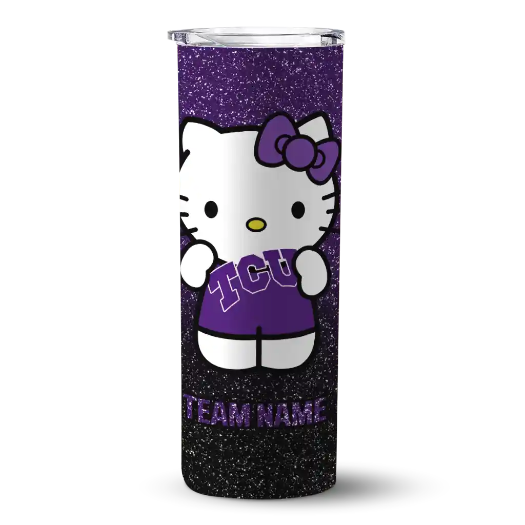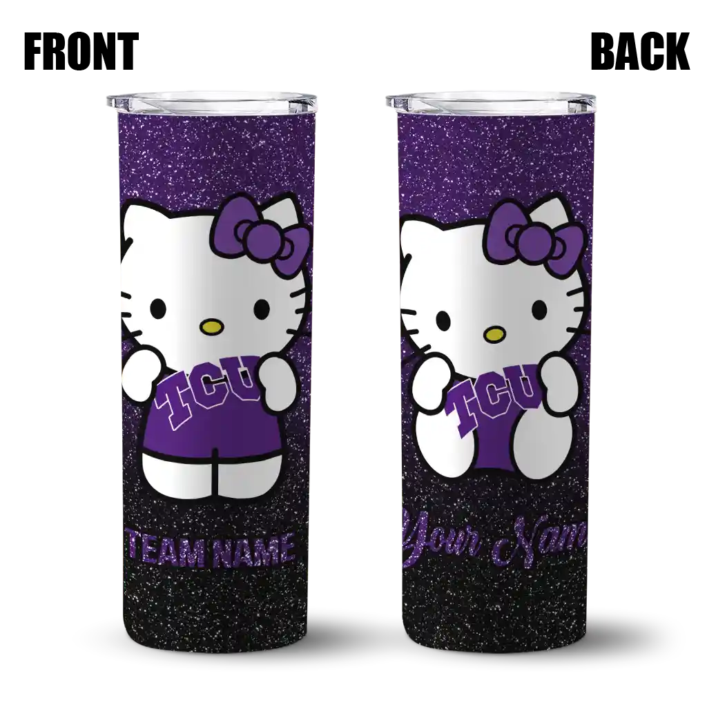 Custom TCU Horned Frogs Hello Kitty Purple Black Skinny Tumbler