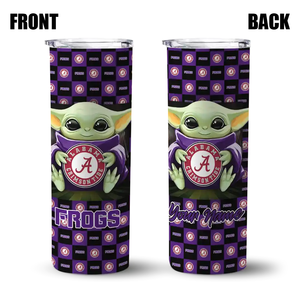 Custom TCU Horned Frogs Yoda Cozy Purple Black Skinny Tumbler