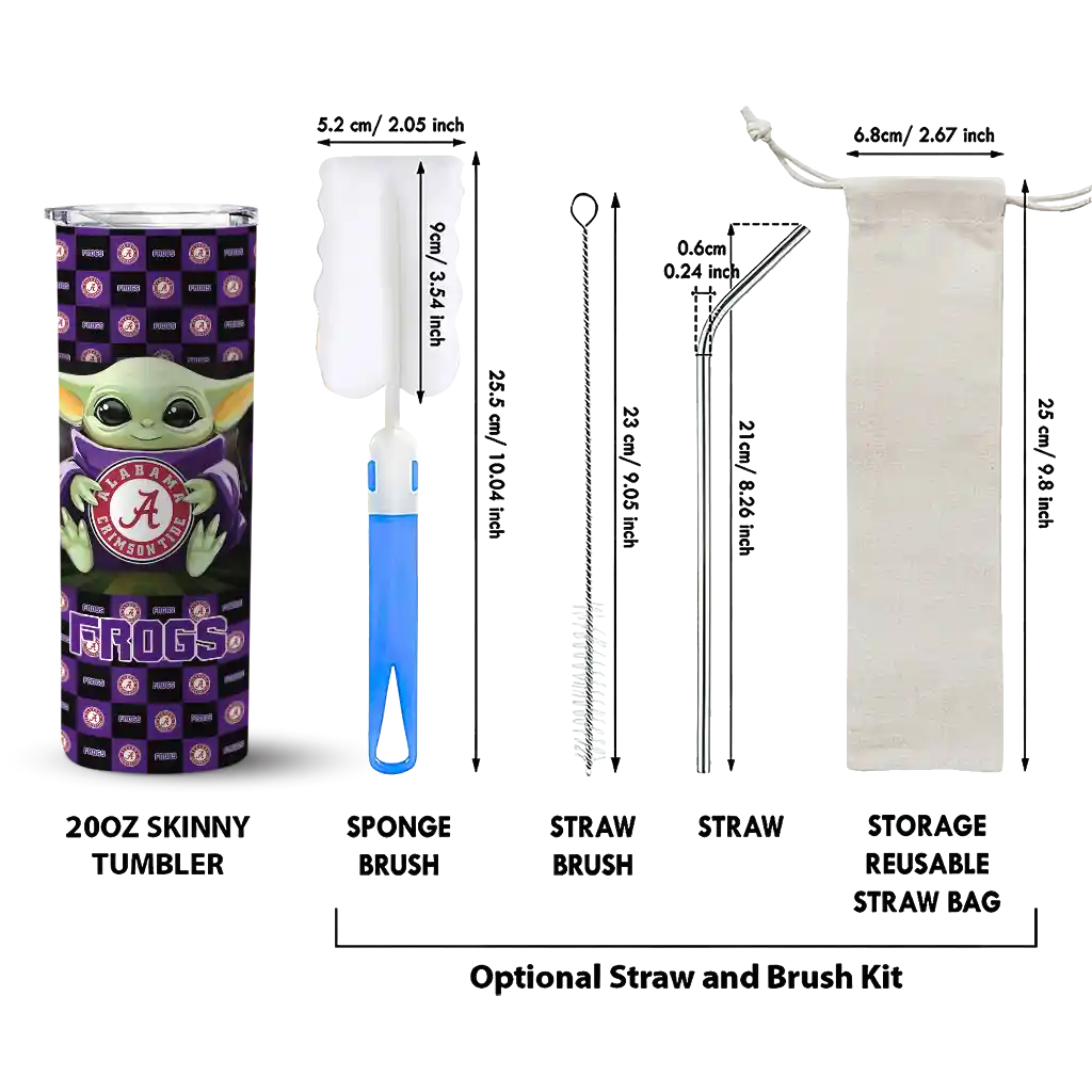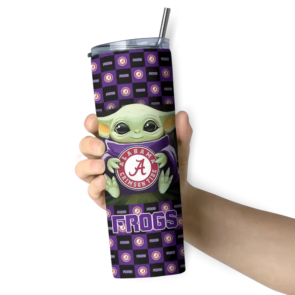 The Custom TCU Horned Frogs Yoda Cozy Purple Black Skinny Tumbler tumbler is the perfect way to stay refreshed while showing off your pride for TCU Horned Frogs. With its double-wall insulation, your drinks stay at the right temperature for hours, whether you're enjoying a hot coffee or keeping your iced drink cold. What's inside? You’ll find 1 stainless steel tumbler, 1 clear lid, and 1 removable straw. It's the perfect blend of function and fan spirit! Ergonomically designed for comfort, made from durable stainless steel, and insulated to maintain your drink’s temperature, this tumbler is a must-have for any dedicated NCAA fan.