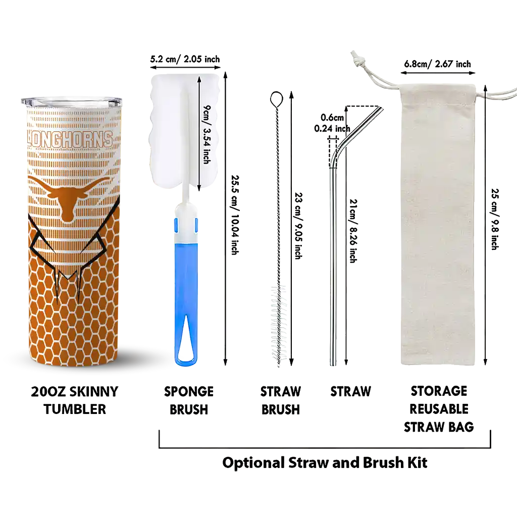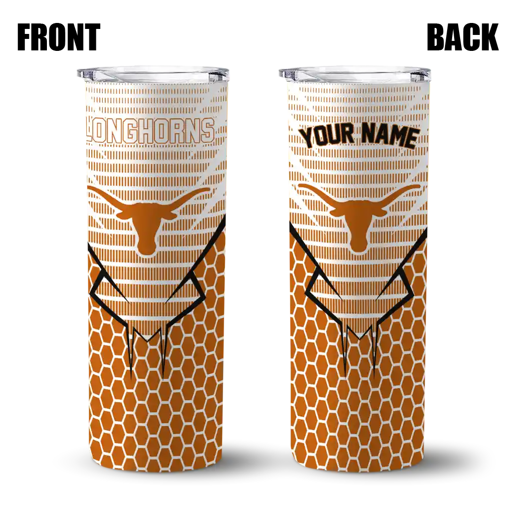 The Custom Texas Longhorns Chevron Stripes Orange Skinny Tumbler tumbler is the perfect way to stay refreshed while showing off your pride for Texas Longhorns. With its double-wall insulation, your drinks stay at the right temperature for hours, whether you're enjoying a hot coffee or keeping your iced drink cold. What's inside? You’ll find 1 stainless steel tumbler, 1 clear lid, and 1 removable straw. It's the perfect blend of function and fan spirit! Ergonomically designed for comfort, made from durable stainless steel, and insulated to maintain your drink’s temperature, this tumbler is a must-have for any dedicated NCAA fan.