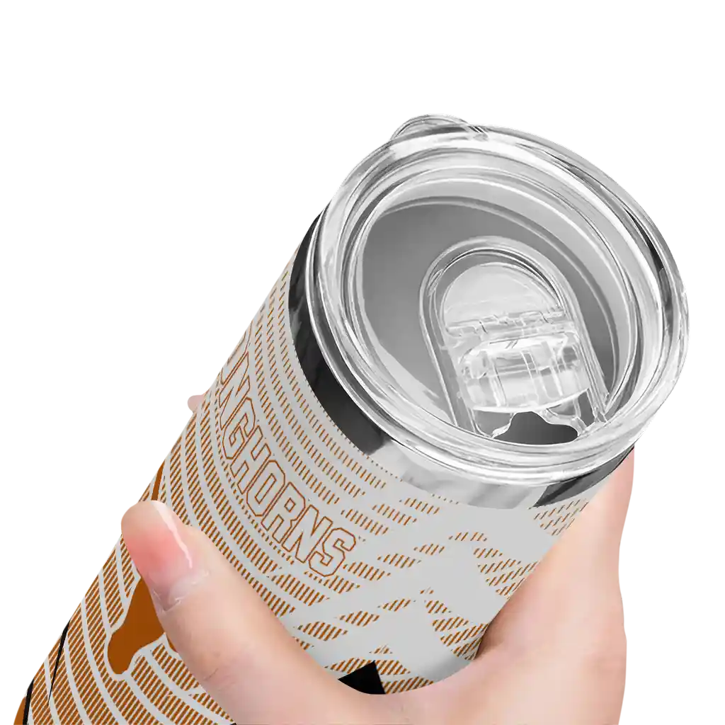 Introducing the Texas Longhorns Tumblers from NCAA Fan Pro —where fan pride meets practical design. This slim tumbler is created for NCAA fans who want their drinks at the perfect temperature while displaying their school pride. The double-wall insulation ensures your hot beverages stay warm and your cold drinks stay chilled for hours, so you can enjoy your drinks at their best, whether you're at a game, tailgate, or on the go.