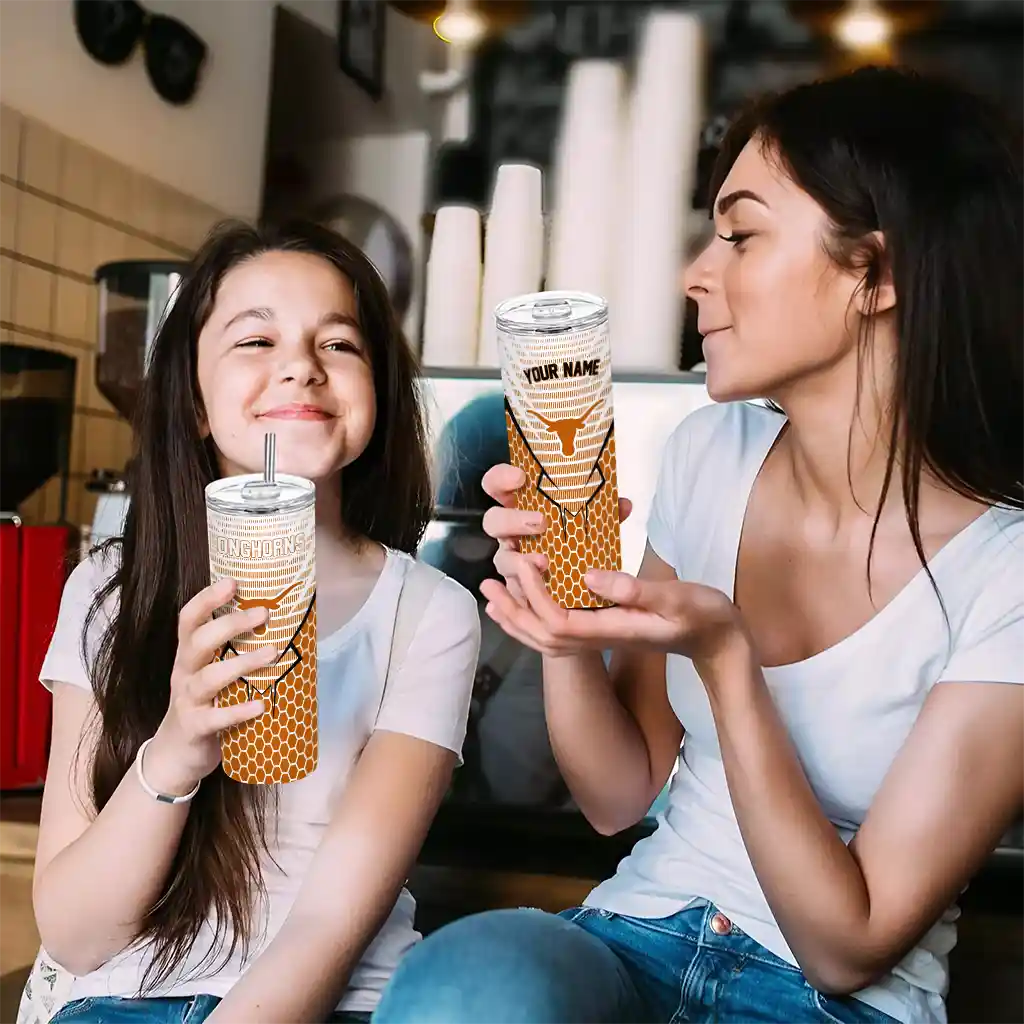 No question about it—the Personalized Texas Longhorns Heart Helmet Motif Orange Curved Tumbler is the ultimate way to stay refreshed while rocking your Texas Longhorns pride. From the stadium to your tailgate, or just chilling at home, this sleek tumbler makes sure you stay hydrated in style. What’s in the box? A stainless steel tumbler, clear lid, and removable straw—all the essentials for keeping your favorite drinks on point!