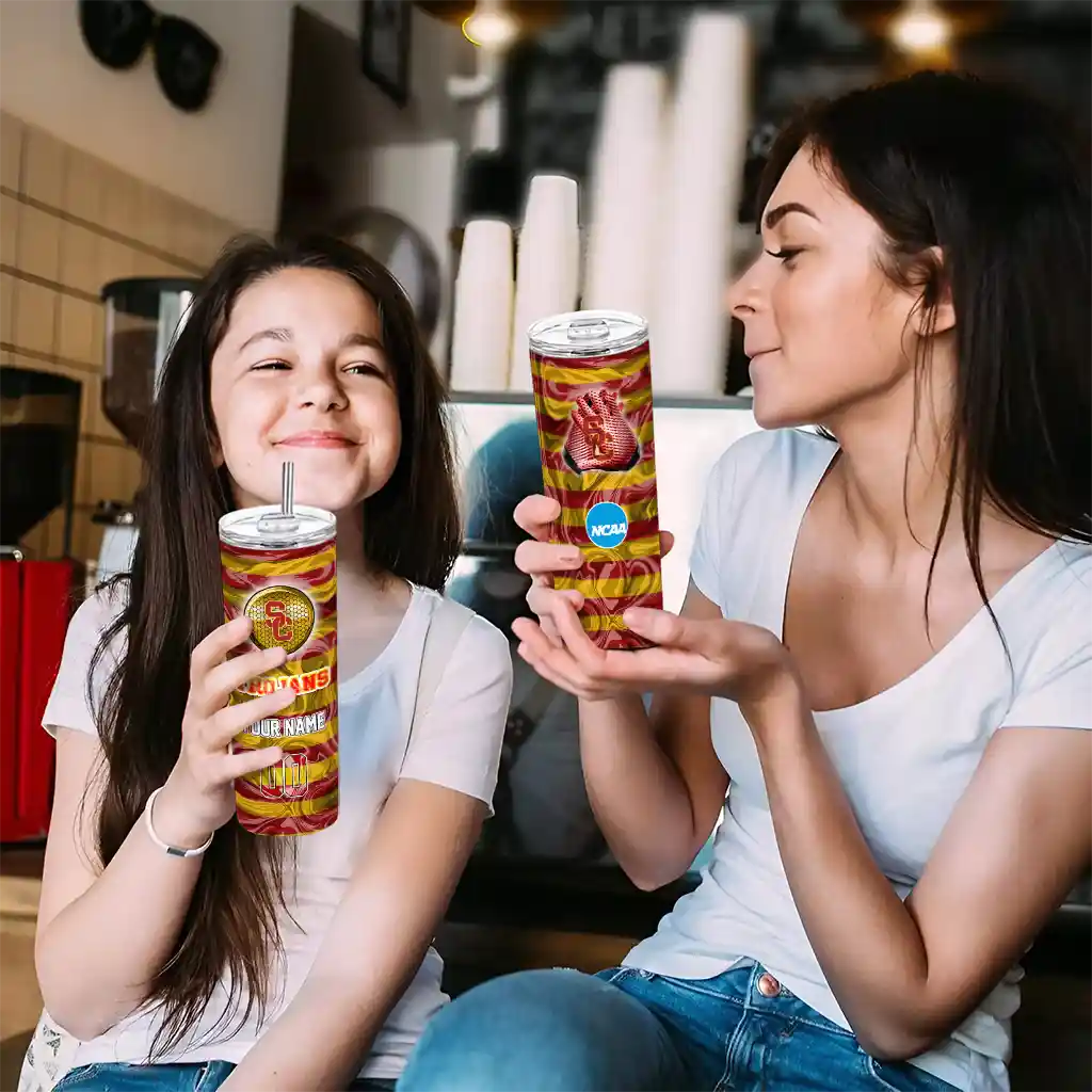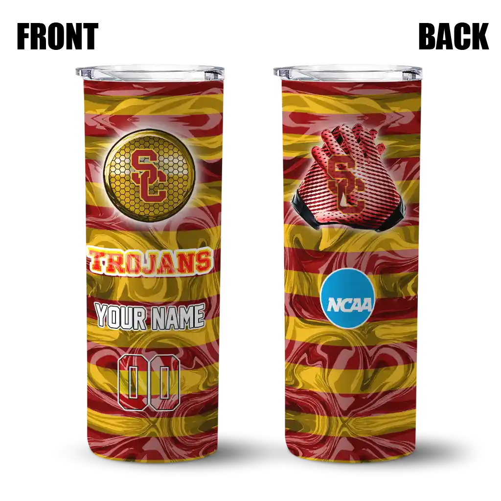 The Customized USC Trojans Swirl Texture Red Skinny Tumbler tumbler is the perfect way to stay refreshed while showing off your pride for USC Trojans. With its double-wall insulation, your drinks stay at the right temperature for hours, whether you're enjoying a hot coffee or keeping your iced drink cold. What's inside? You’ll find 1 stainless steel tumbler, 1 clear lid, and 1 removable straw. It's the perfect blend of function and fan spirit! Ergonomically designed for comfort, made from durable stainless steel, and insulated to maintain your drink’s temperature, this tumbler is a must-have for any dedicated NCAA fan.