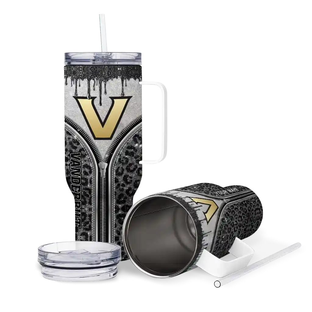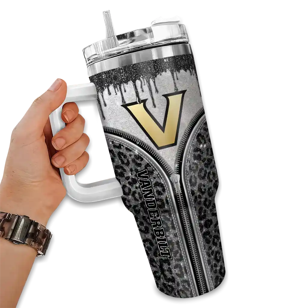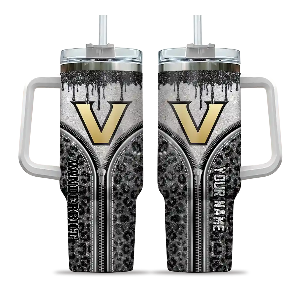 Vanderbilt Commodores Curved Tumbler – Custom Leopard Zipper Black