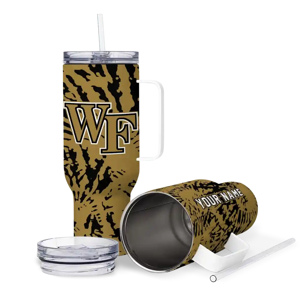 No question about it—the Custom Wake Forest Demon Deacons Burst Swirl Gold Curved Tumbler is the ultimate way to stay refreshed while rocking your Wake Forest Demon Deacons pride. From the stadium to your tailgate, or just chilling at home, this sleek tumbler makes sure you stay hydrated in style. What’s in the box? A stainless steel tumbler, clear lid, and removable straw—all the essentials for keeping your favorite drinks on point!