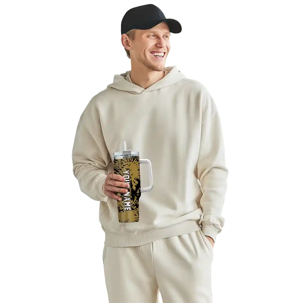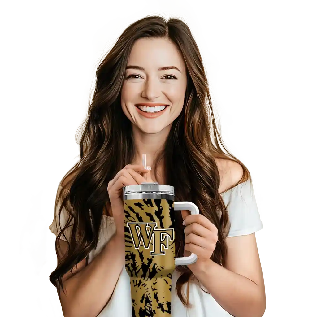 No question about it—the Personalized Wake Forest Demon Deacons Camo Mashup Gold White Curved Tumbler is the ultimate way to stay refreshed while rocking your Wake Forest Demon Deacons pride. From the stadium to your tailgate, or just chilling at home, this sleek tumbler makes sure you stay hydrated in style. What’s in the box? A stainless steel tumbler, clear lid, and removable straw—all the essentials for keeping your favorite drinks on point!
