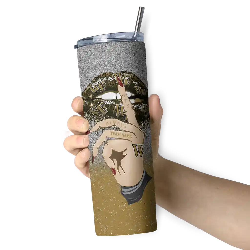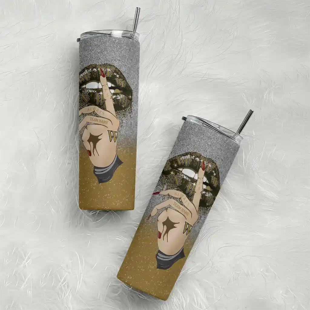 Custom Wake Forest Demon Deacons Sparkle Lips Gold Skinny Tumbler