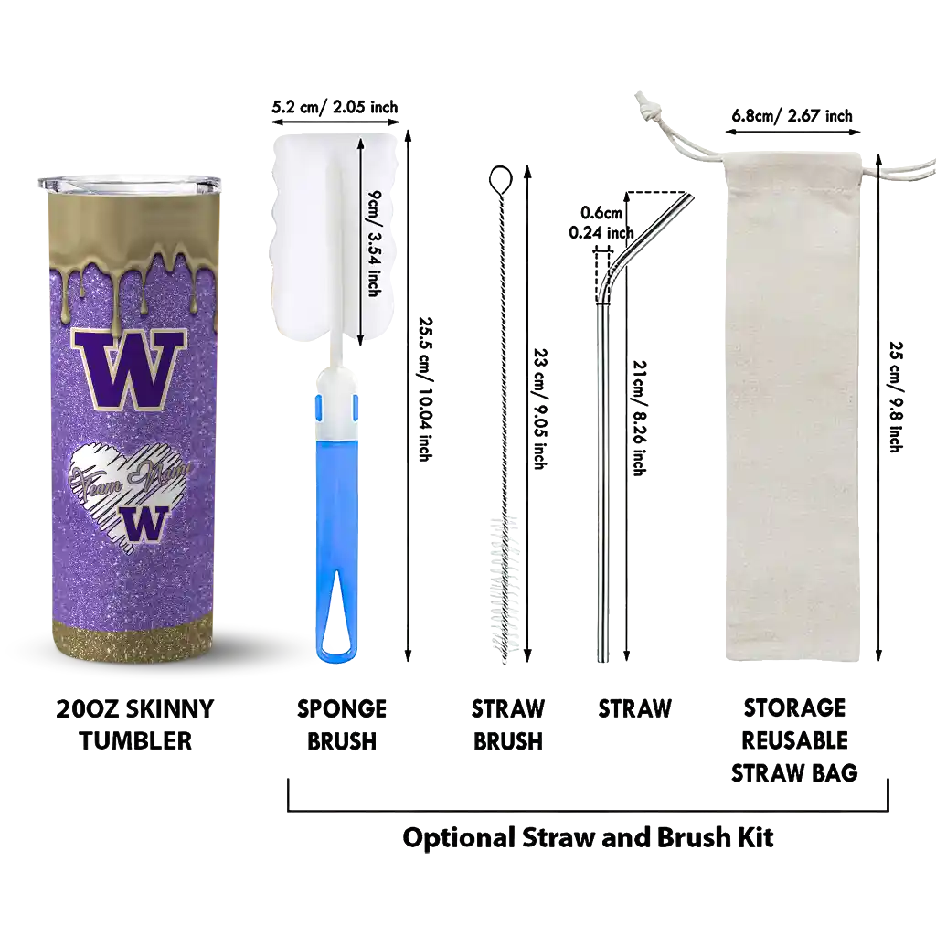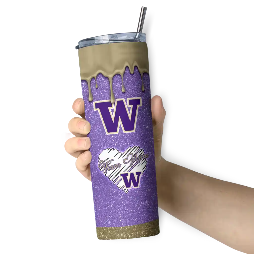 No question about it—the Personalized Washington Huskies Leopard Zipper Purple Curved Tumbler is the ultimate way to stay refreshed while rocking your Washington Huskies pride. From the stadium to your tailgate, or just chilling at home, this sleek tumbler makes sure you stay hydrated in style. What’s in the box? A stainless steel tumbler, clear lid, and removable straw—all the essentials for keeping your favorite drinks on point!