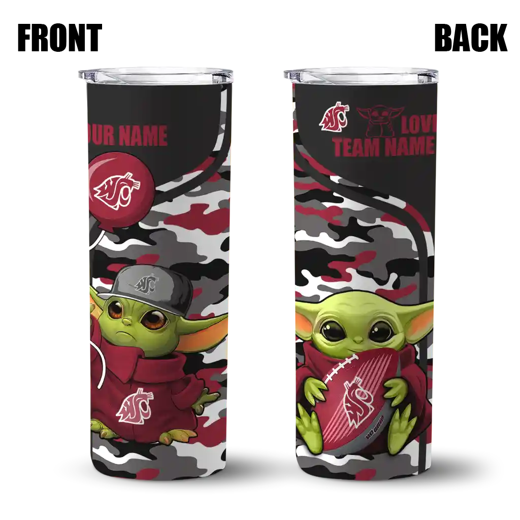 Custom Washington State Cougars Yoda Camo Crimson Black Skinny Tumbler
