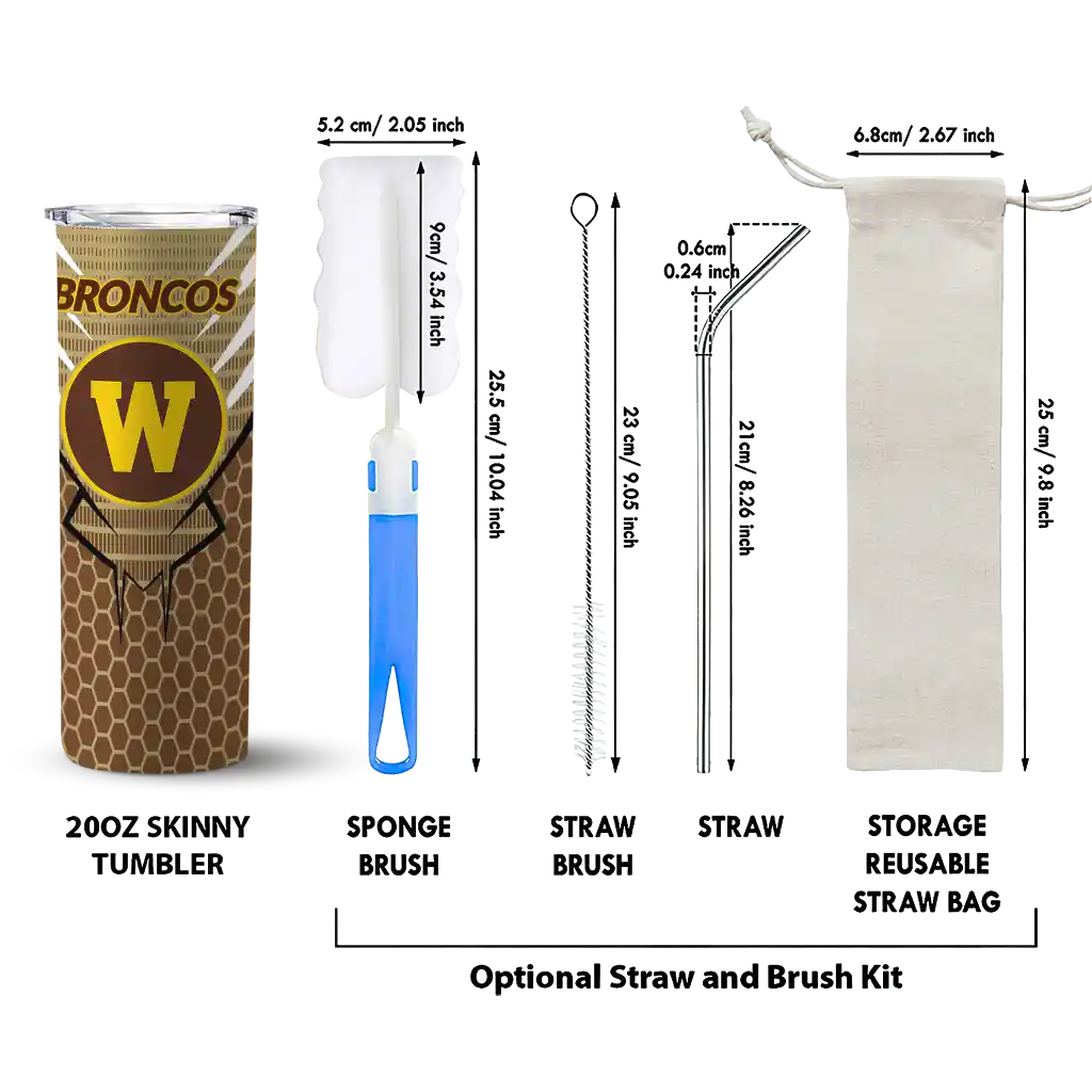 The Custom Western Michigan Broncos Chevron Stripes Brown Skinny Tumbler tumbler is the perfect way to stay refreshed while showing off your pride for Western Michigan Broncos. With its double-wall insulation, your drinks stay at the right temperature for hours, whether you're enjoying a hot coffee or keeping your iced drink cold. What's inside? You’ll find 1 stainless steel tumbler, 1 clear lid, and 1 removable straw. It's the perfect blend of function and fan spirit! Ergonomically designed for comfort, made from durable stainless steel, and insulated to maintain your drink’s temperature, this tumbler is a must-have for any dedicated NCAA fan.