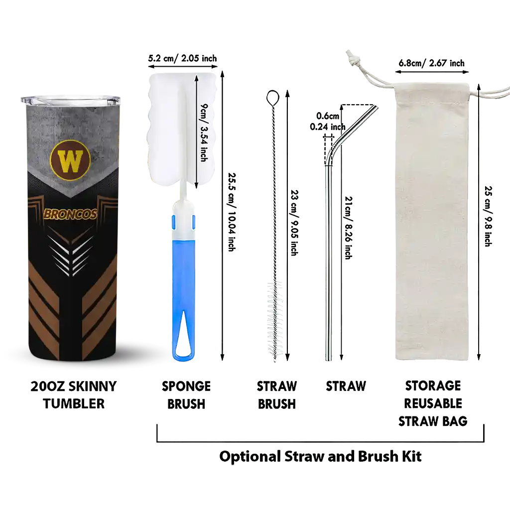 The Custom Western Michigan Broncos Hexagon Honeycomb Brown Black Skinny Tumbler tumbler is the perfect way to stay refreshed while showing off your pride for Western Michigan Broncos. With its double-wall insulation, your drinks stay at the right temperature for hours, whether you're enjoying a hot coffee or keeping your iced drink cold. What's inside? You’ll find 1 stainless steel tumbler, 1 clear lid, and 1 removable straw. It's the perfect blend of function and fan spirit! Ergonomically designed for comfort, made from durable stainless steel, and insulated to maintain your drink’s temperature, this tumbler is a must-have for any dedicated NCAA fan.