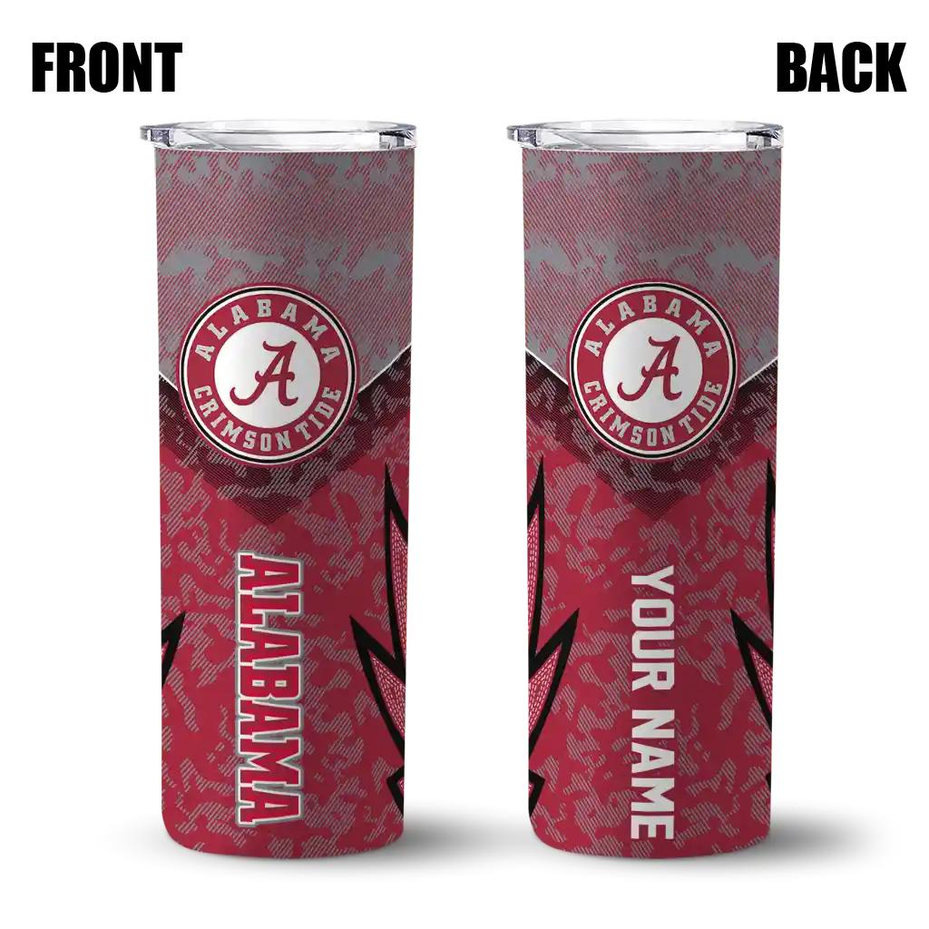 The Personalized Alabama Crimson Tide Stacked Diamond Crimson Skinny Tumbler tumbler is the perfect way to stay refreshed while showing off your pride for Alabama Crimson Tide. With its double-wall insulation, your drinks stay at the right temperature for hours, whether you're enjoying a hot coffee or keeping your iced drink cold. What's inside? You’ll find 1 stainless steel tumbler, 1 clear lid, and 1 removable straw. It's the perfect blend of function and fan spirit! Ergonomically designed for comfort, made from durable stainless steel, and insulated to maintain your drink’s temperature, this tumbler is a must-have for any dedicated NCAA fan.