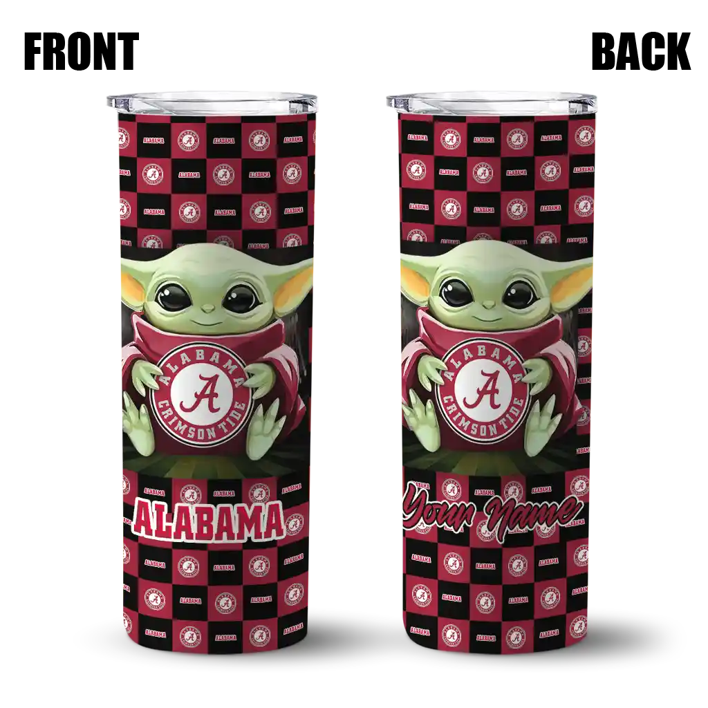 Customized Alabama Crimson Tide Yoda Cozy Crimson Black Skinny Tumbler