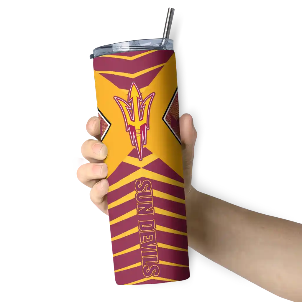 Introducing the Arizona State Sun Devils Tumblers from NCAA Fan Pro —where fan pride meets practical design. This slim tumbler is created for NCAA fans who want their drinks at the perfect temperature while displaying their school pride. The double-wall insulation ensures your hot beverages stay warm and your cold drinks stay chilled for hours, so you can enjoy your drinks at their best, whether you're at a game, tailgate, or on the go.