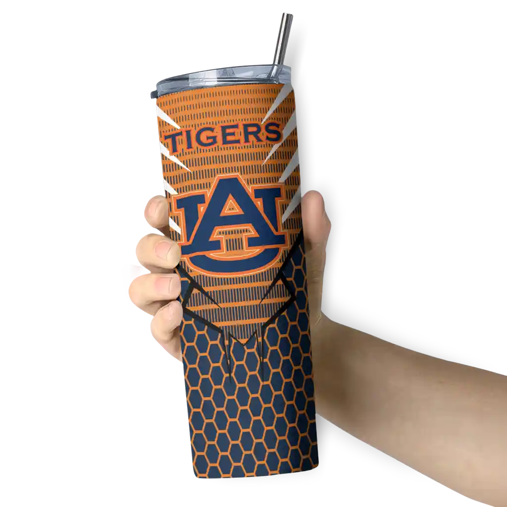 No question about it—the Custom Auburn Tigers Hexagon Armor Navy Blue Curved Tumbler is the ultimate way to stay refreshed while rocking your Auburn Tigers pride. From the stadium to your tailgate, or just chilling at home, this sleek tumbler makes sure you stay hydrated in style. What’s in the box? A stainless steel tumbler, clear lid, and removable straw—all the essentials for keeping your favorite drinks on point!