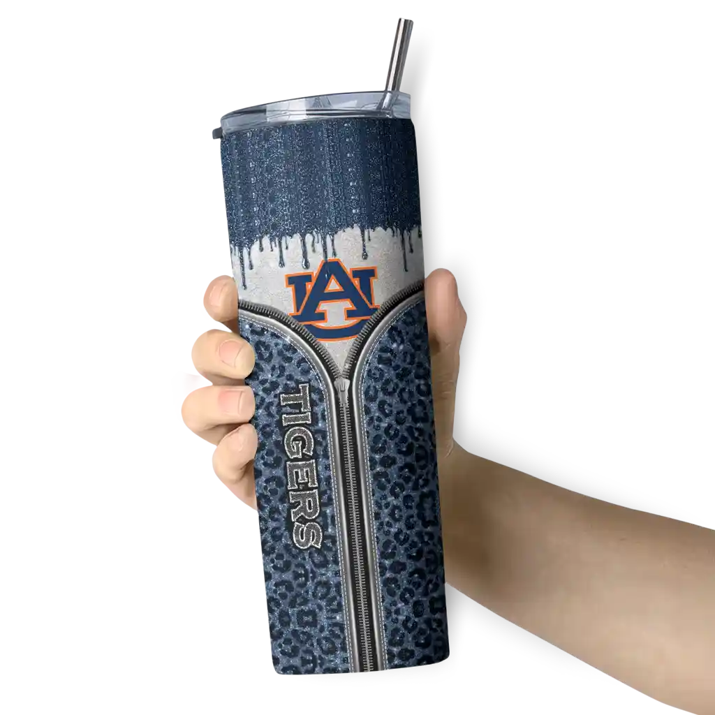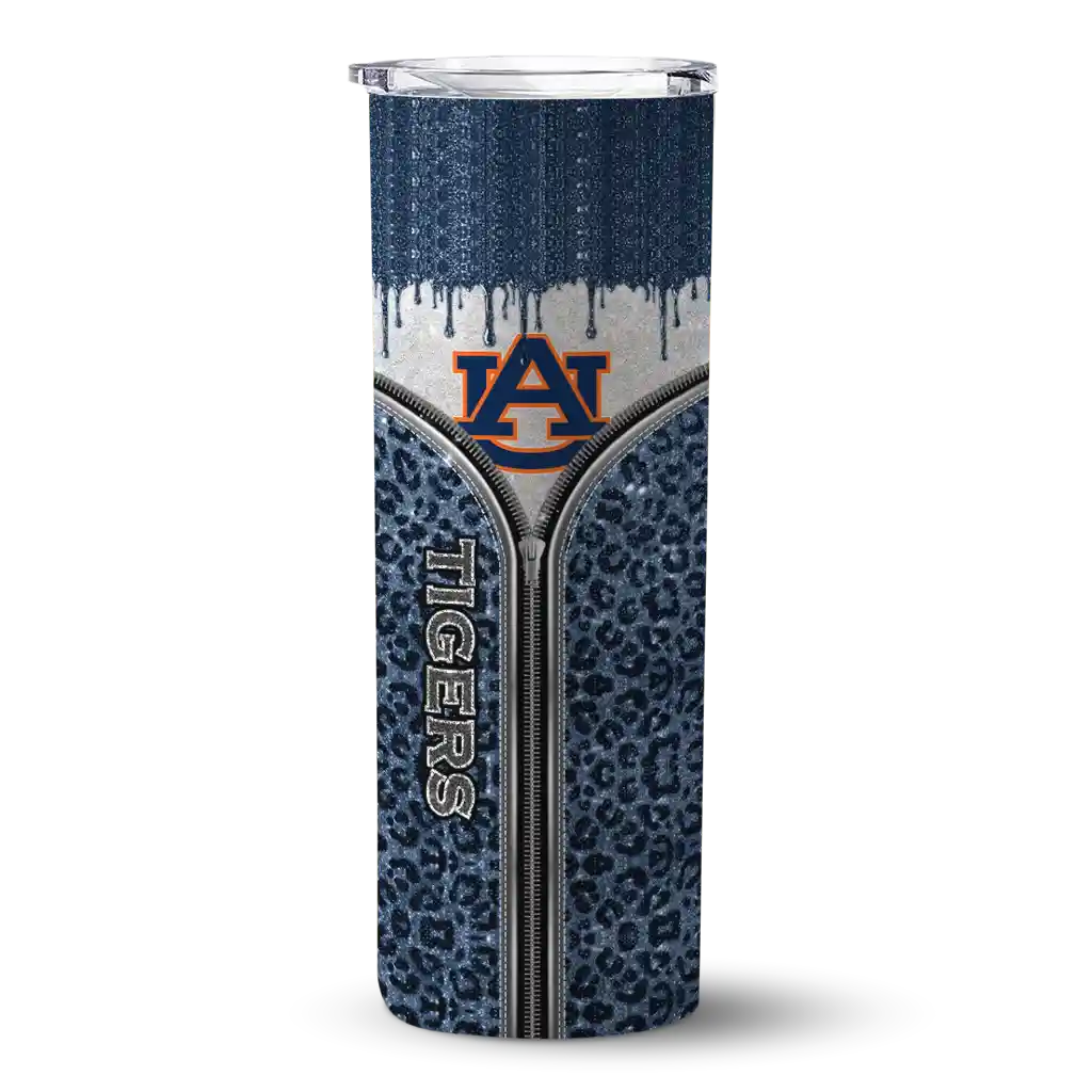 The Customized Auburn Tigers Sparkle Drip Navy Blue Skinny Tumbler tumbler is the perfect way to stay refreshed while showing off your pride for Auburn Tigers. With its double-wall insulation, your drinks stay at the right temperature for hours, whether you're enjoying a hot coffee or keeping your iced drink cold. What's inside? You’ll find 1 stainless steel tumbler, 1 clear lid, and 1 removable straw. It's the perfect blend of function and fan spirit! Ergonomically designed for comfort, made from durable stainless steel, and insulated to maintain your drink’s temperature, this tumbler is a must-have for any dedicated NCAA fan.