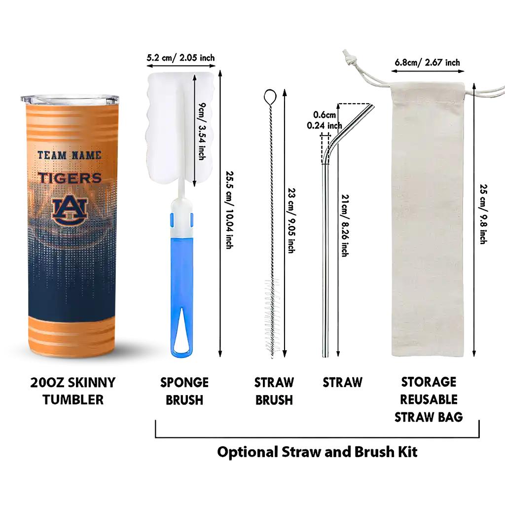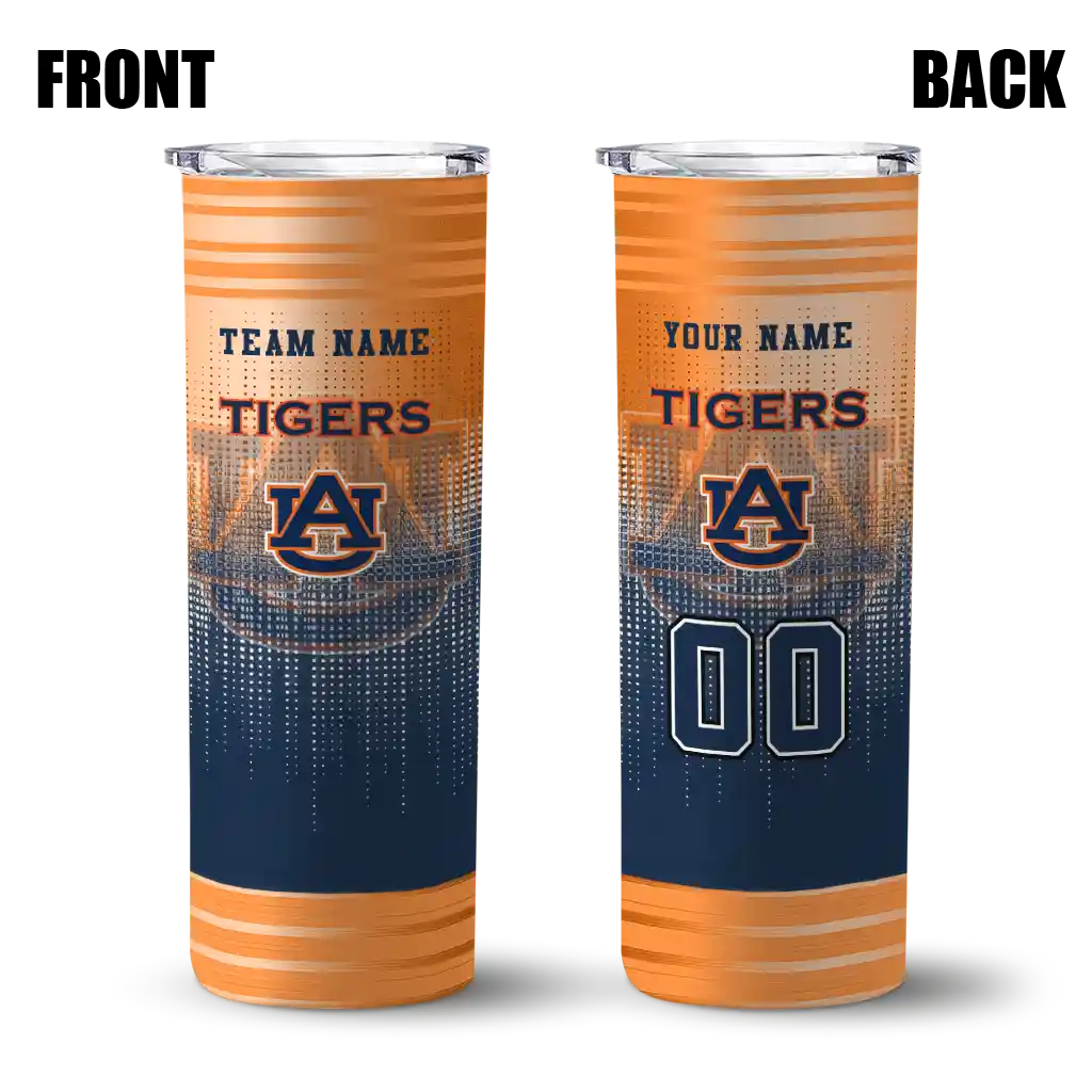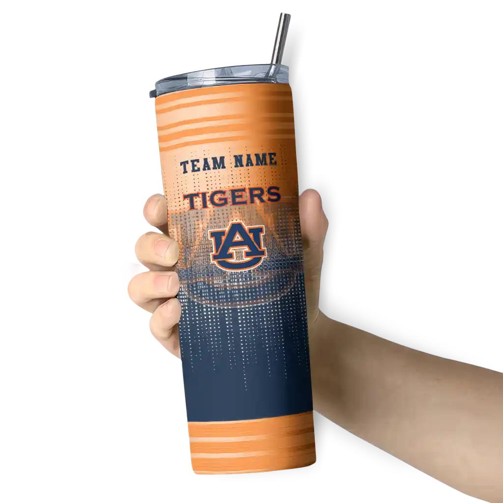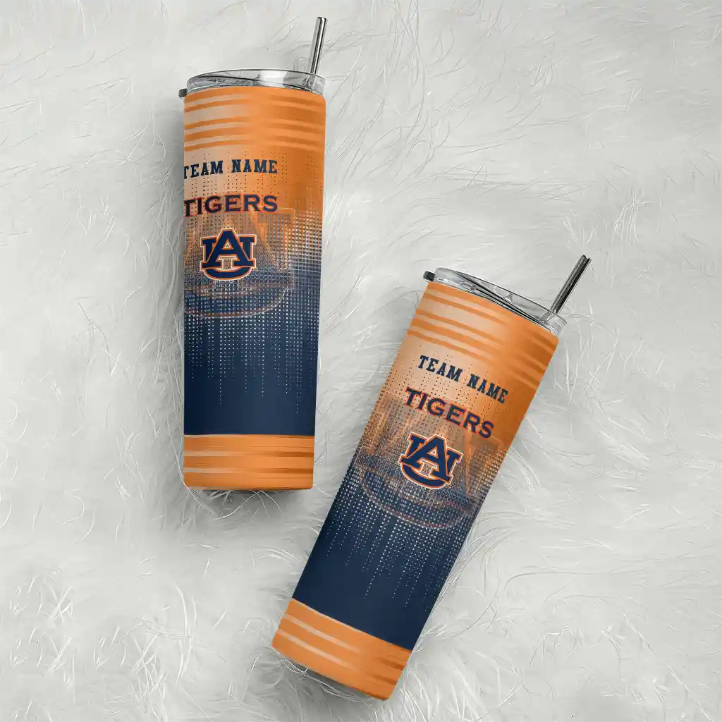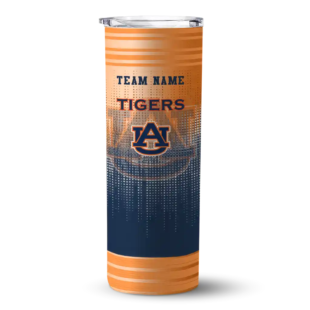 The Customized Auburn Tigers Swirl Texture Navy Blue Skinny Tumbler tumbler is the perfect way to stay refreshed while showing off your pride for Auburn Tigers. With its double-wall insulation, your drinks stay at the right temperature for hours, whether you're enjoying a hot coffee or keeping your iced drink cold. What's inside? You’ll find 1 stainless steel tumbler, 1 clear lid, and 1 removable straw. It's the perfect blend of function and fan spirit! Ergonomically designed for comfort, made from durable stainless steel, and insulated to maintain your drink’s temperature, this tumbler is a must-have for any dedicated NCAA fan.