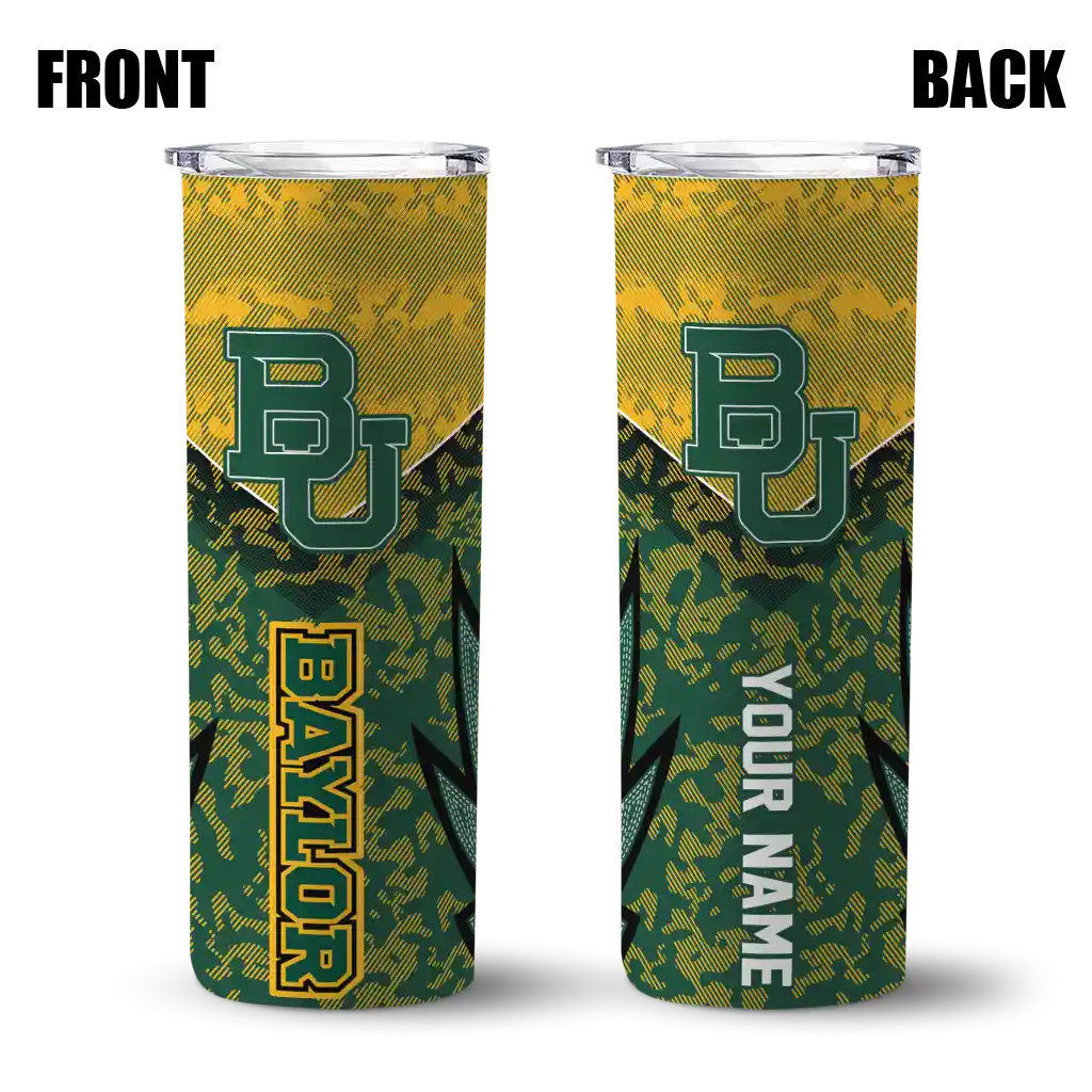 The Personalized Baylor Bears Helmet Clash Green Skinny Tumbler tumbler is the perfect way to stay refreshed while showing off your pride for Baylor Bears. With its double-wall insulation, your drinks stay at the right temperature for hours, whether you're enjoying a hot coffee or keeping your iced drink cold. What's inside? You’ll find 1 stainless steel tumbler, 1 clear lid, and 1 removable straw. It's the perfect blend of function and fan spirit! Ergonomically designed for comfort, made from durable stainless steel, and insulated to maintain your drink’s temperature, this tumbler is a must-have for any dedicated NCAA fan.